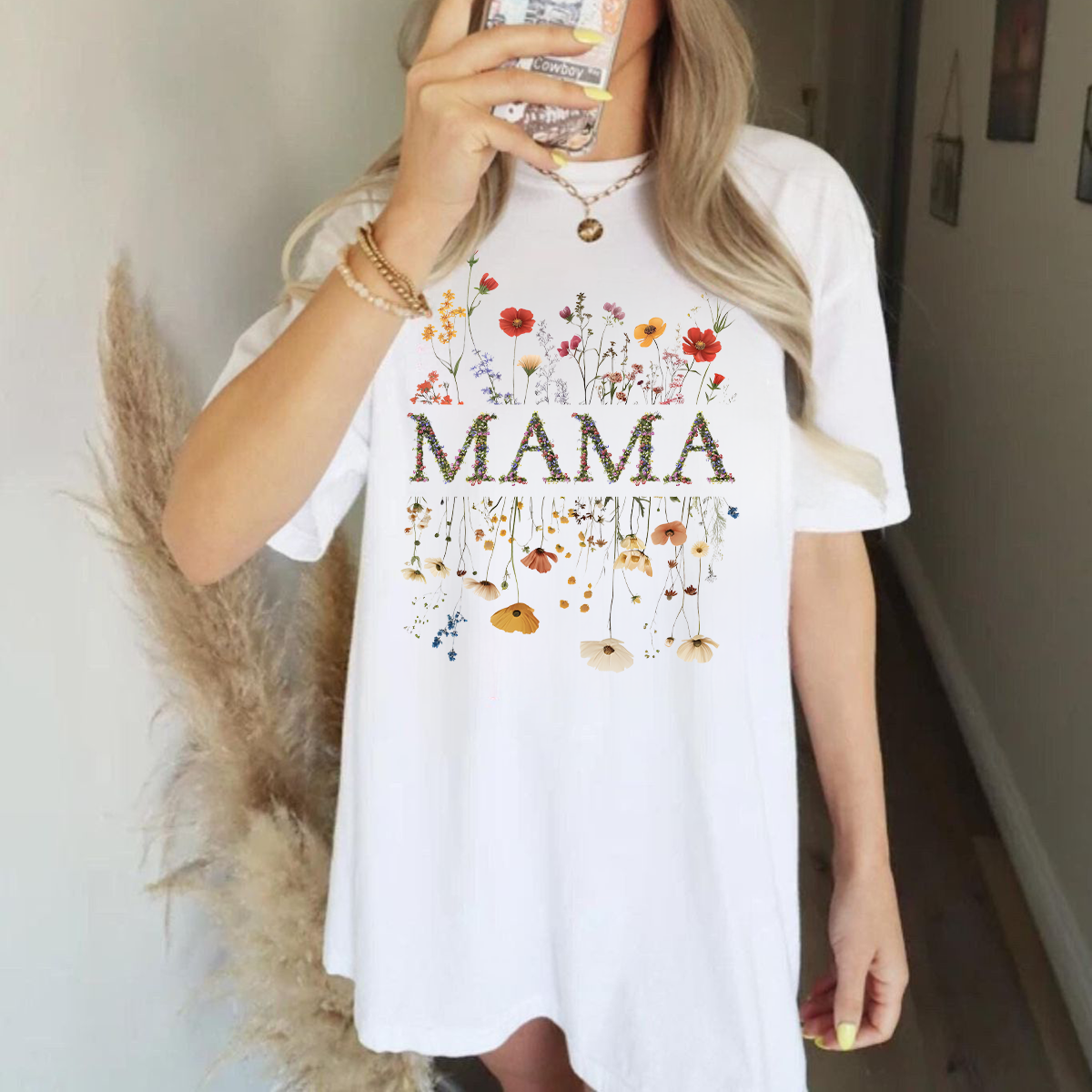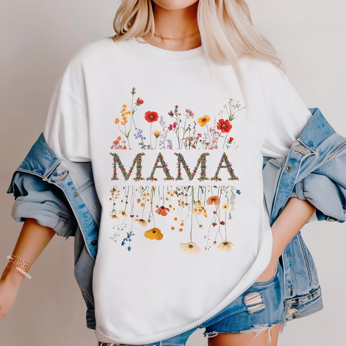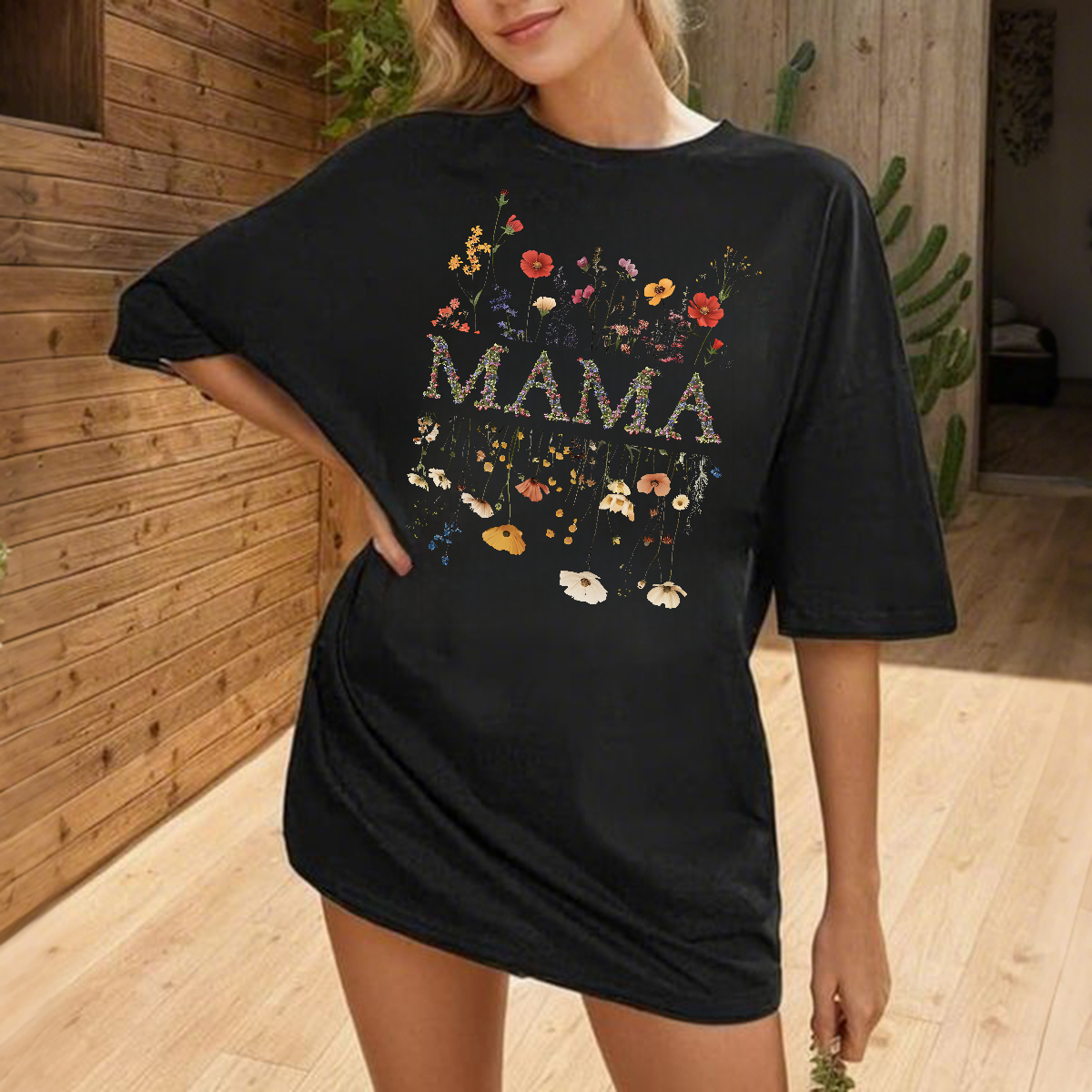 "Mama", The Slogan Is Composed Of Multiple Colorful Flower Patterns, And Various Bright Flowers, Including Red, Orange, Yellow, Purple And Other Flower Patterns, Casual T-Shirts, Mother'S Wear. 9518232