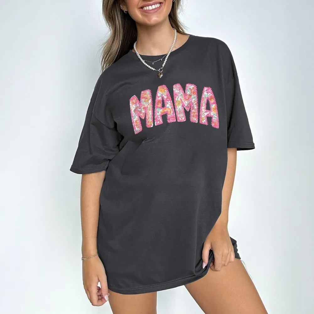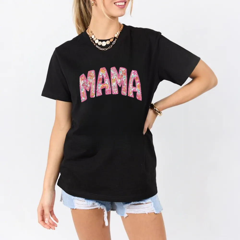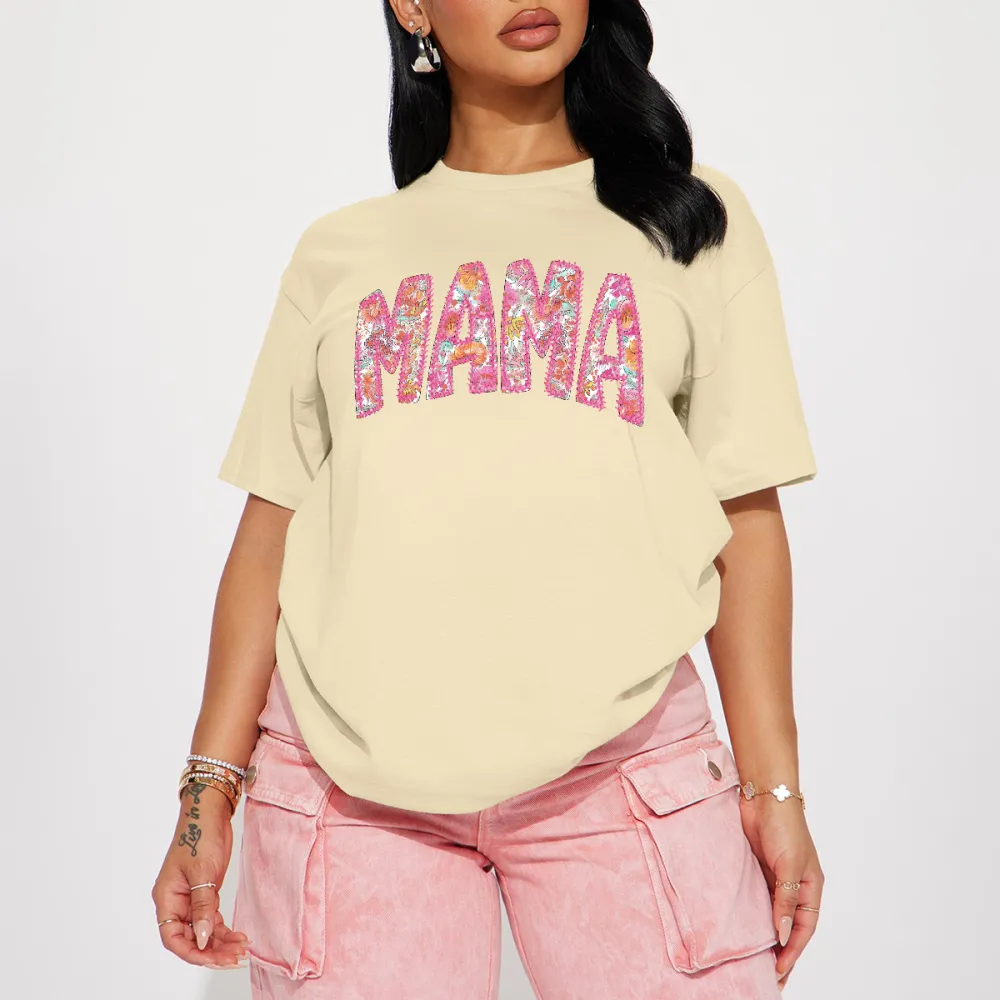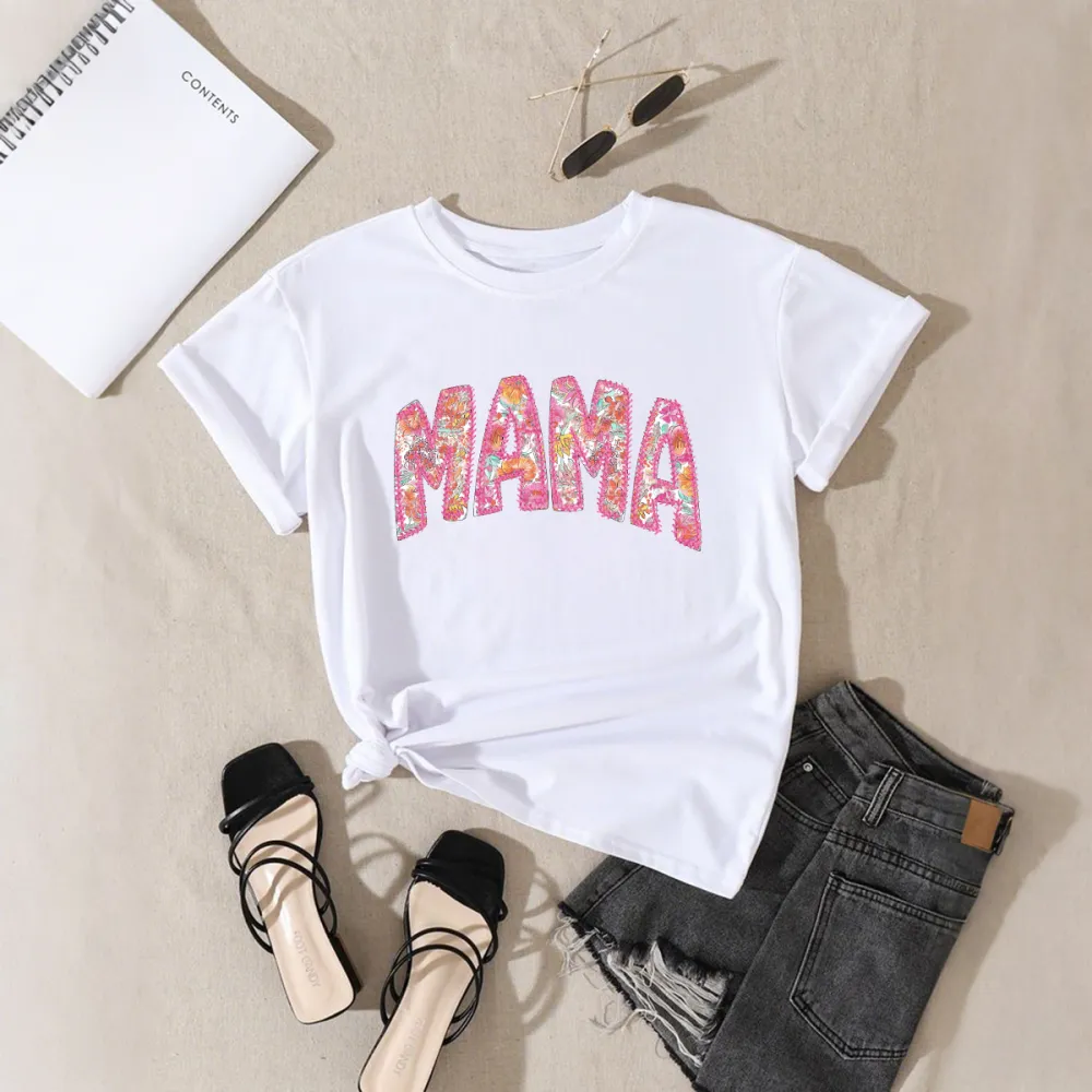 "Mama" Filled With Colorful Patterns, Casual T-Shirts, Mom Wear.
