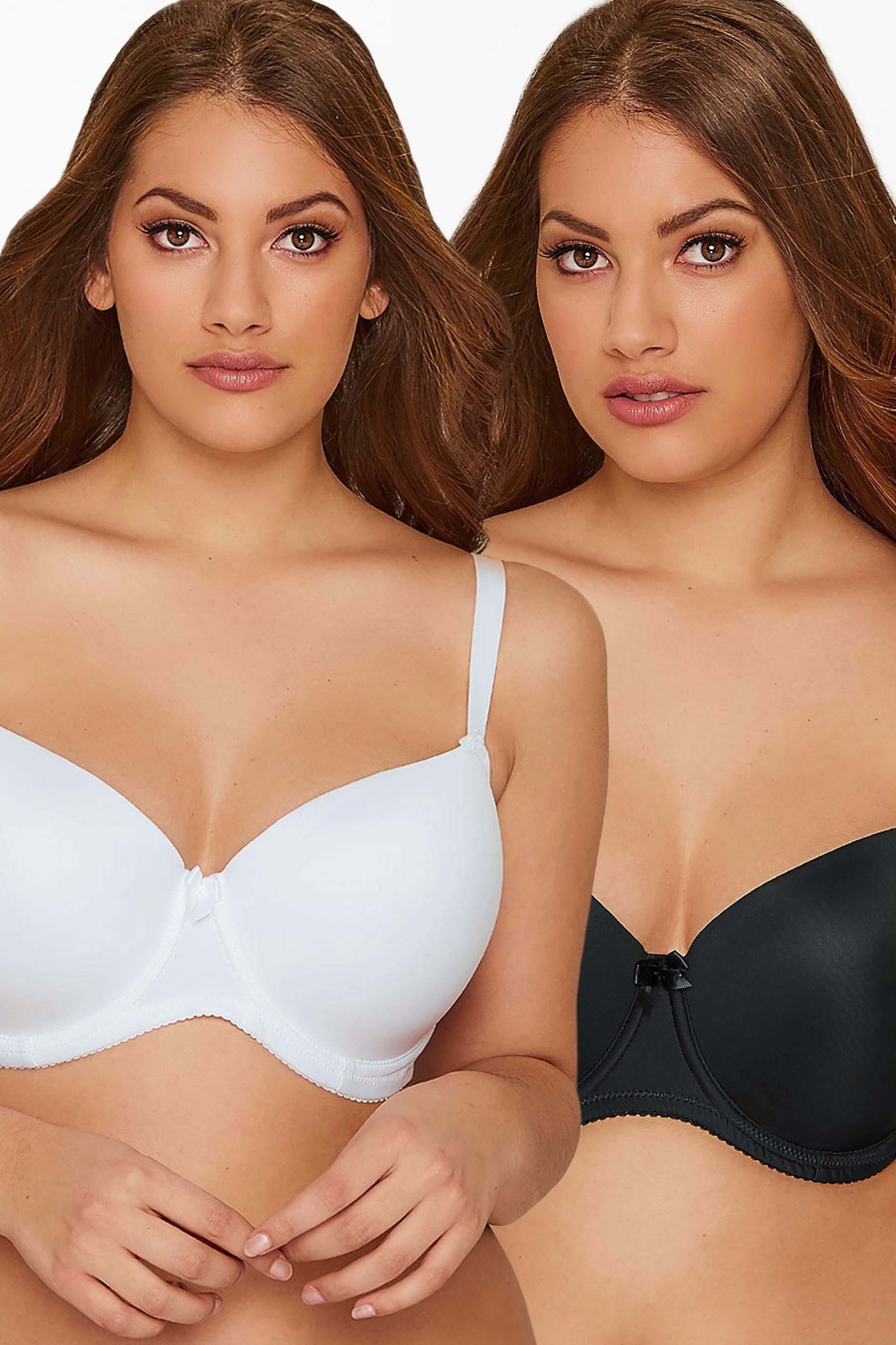 - 1 x white and 1 x black moulded cup t-shirt bra