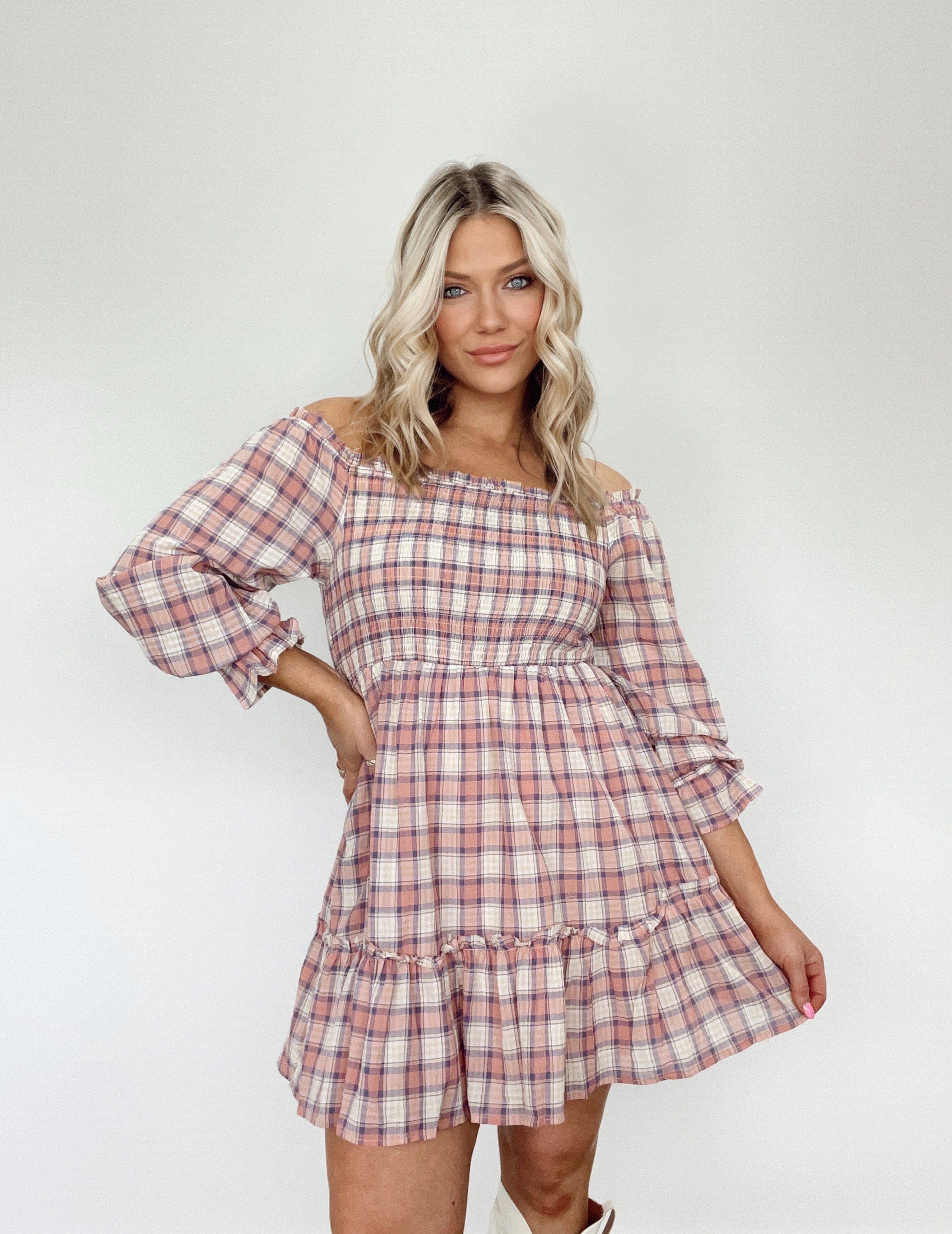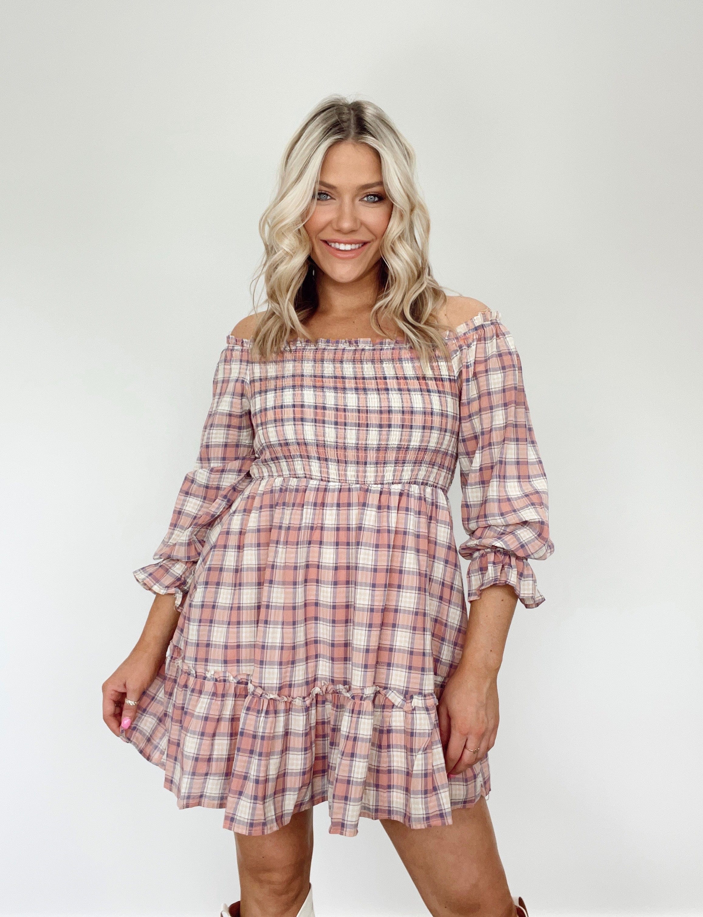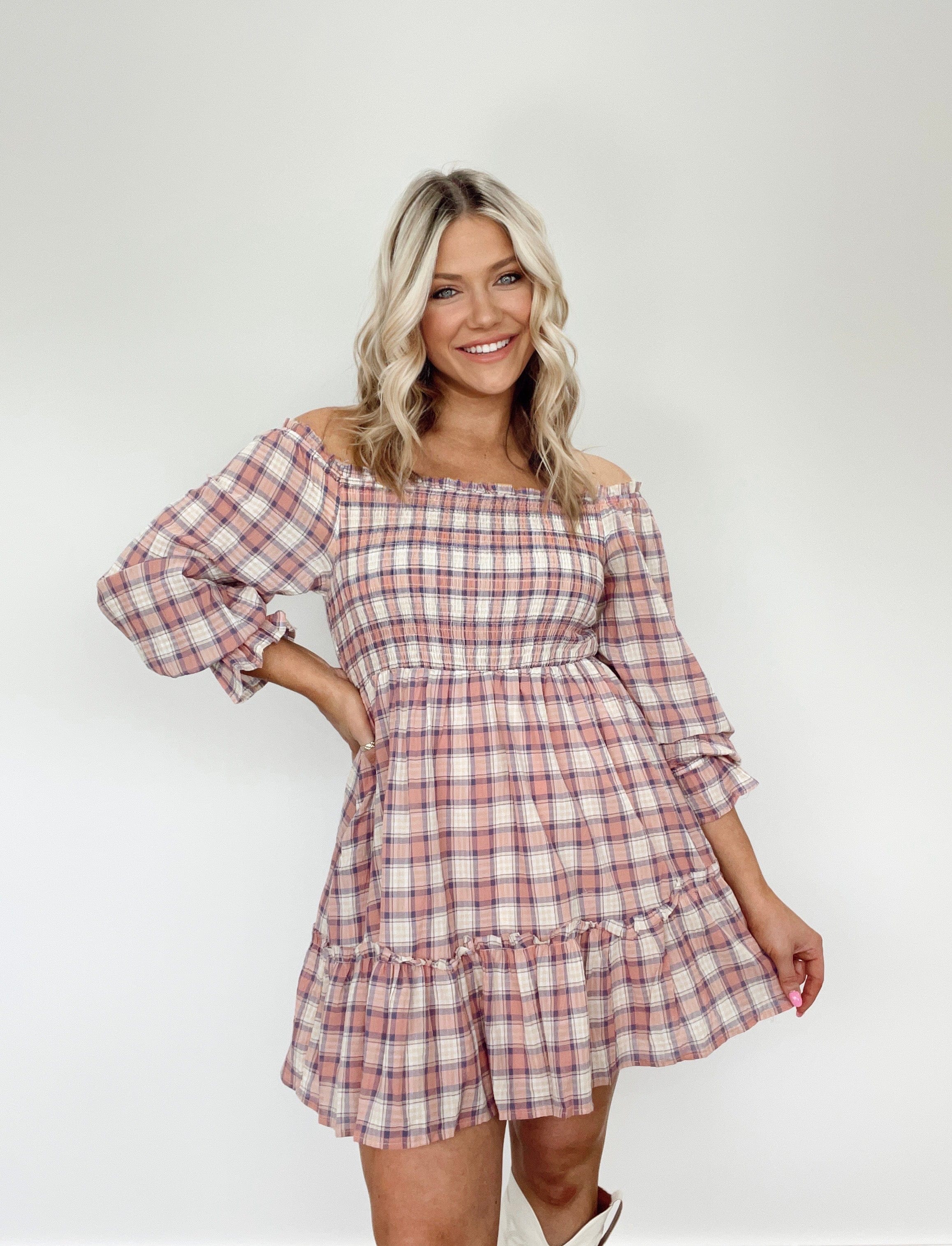 Make a statement with the Lane 201 Our Own The Town Plaid Dress! Featuring an off-the-shoulder ruffled neckline, smocked body, and ruffled hemline, this dress is perfect for any plaid lover!