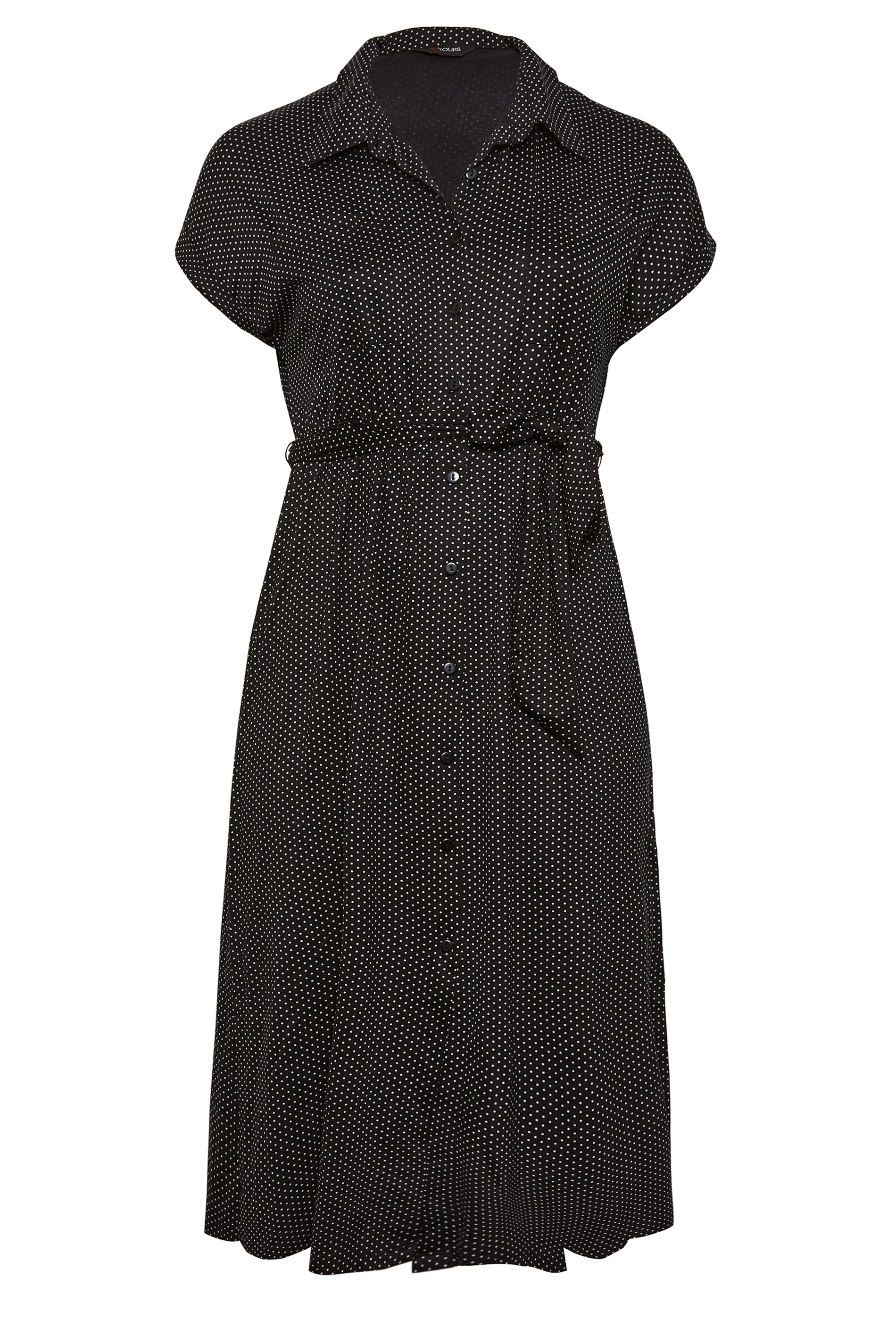 Refresh your casual dress collection for the winter season. Made from a comfortable fabric, this dress features an adjustable tie waist, a chest pocket, collar neck, short sleeves and is complete in a polka dot print. Style with black heeled boots for the perfect on-the-go outfit.