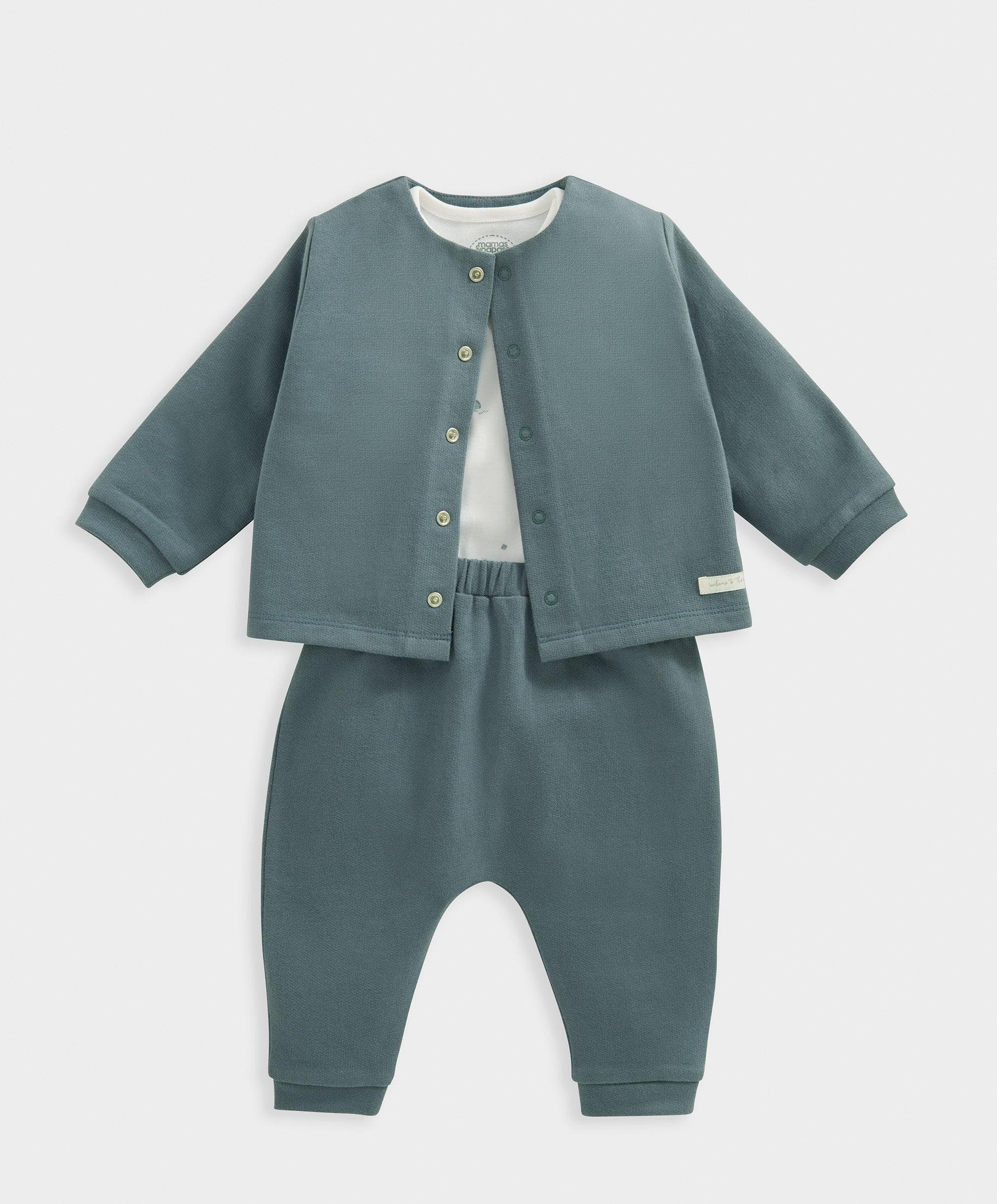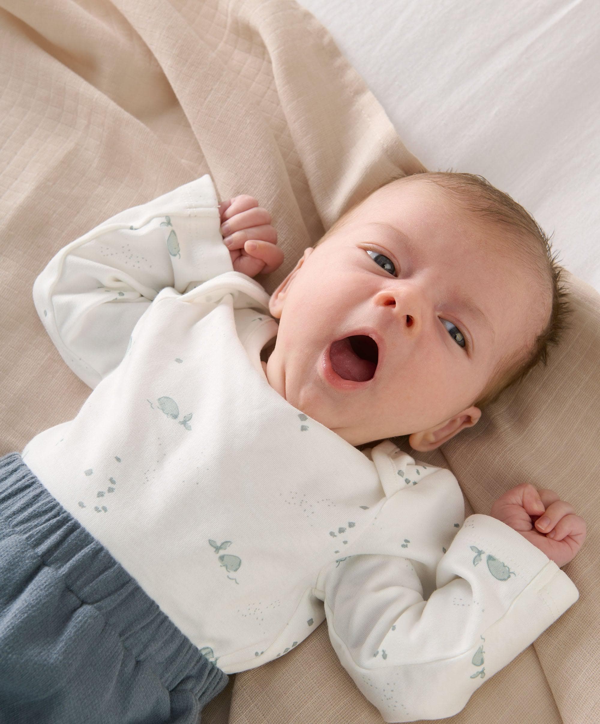 3-piece jacket, leggings and bodysuit set - a complete outfit! Long-sleeved whale print bodysuit with popper fastening on crotch. Jacket with buttons. Made from 100% cotton.