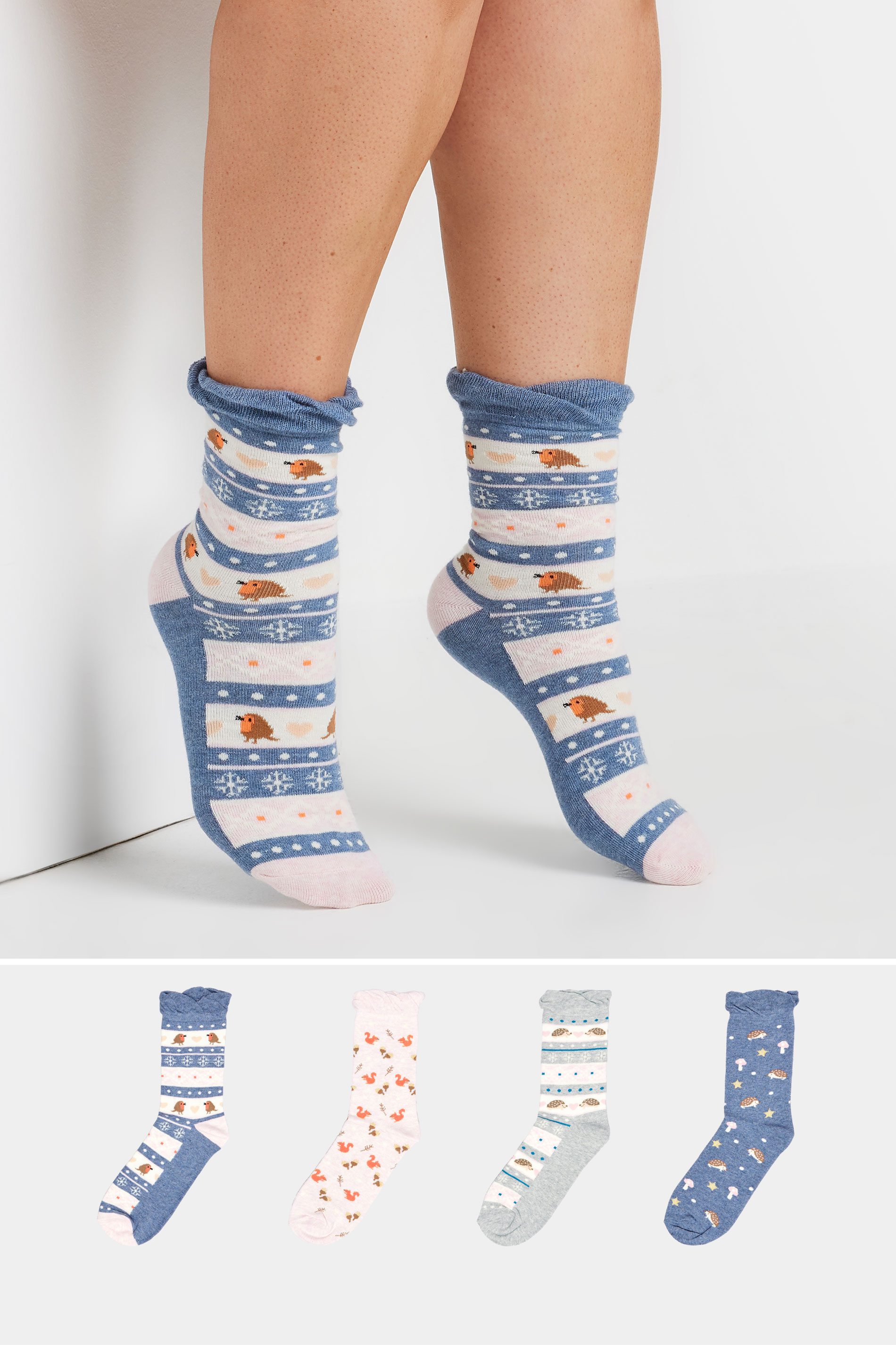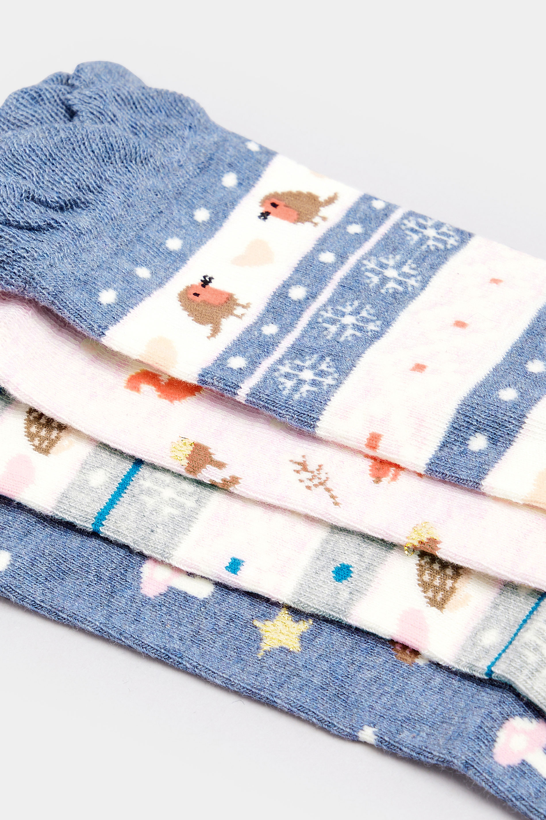 This new-in 4 pack of ankle socks is set to be a top drawer essential. Made from a soft jersey fabric, they feature a woodland animal print, with a fairisle design and comfort cuffs.