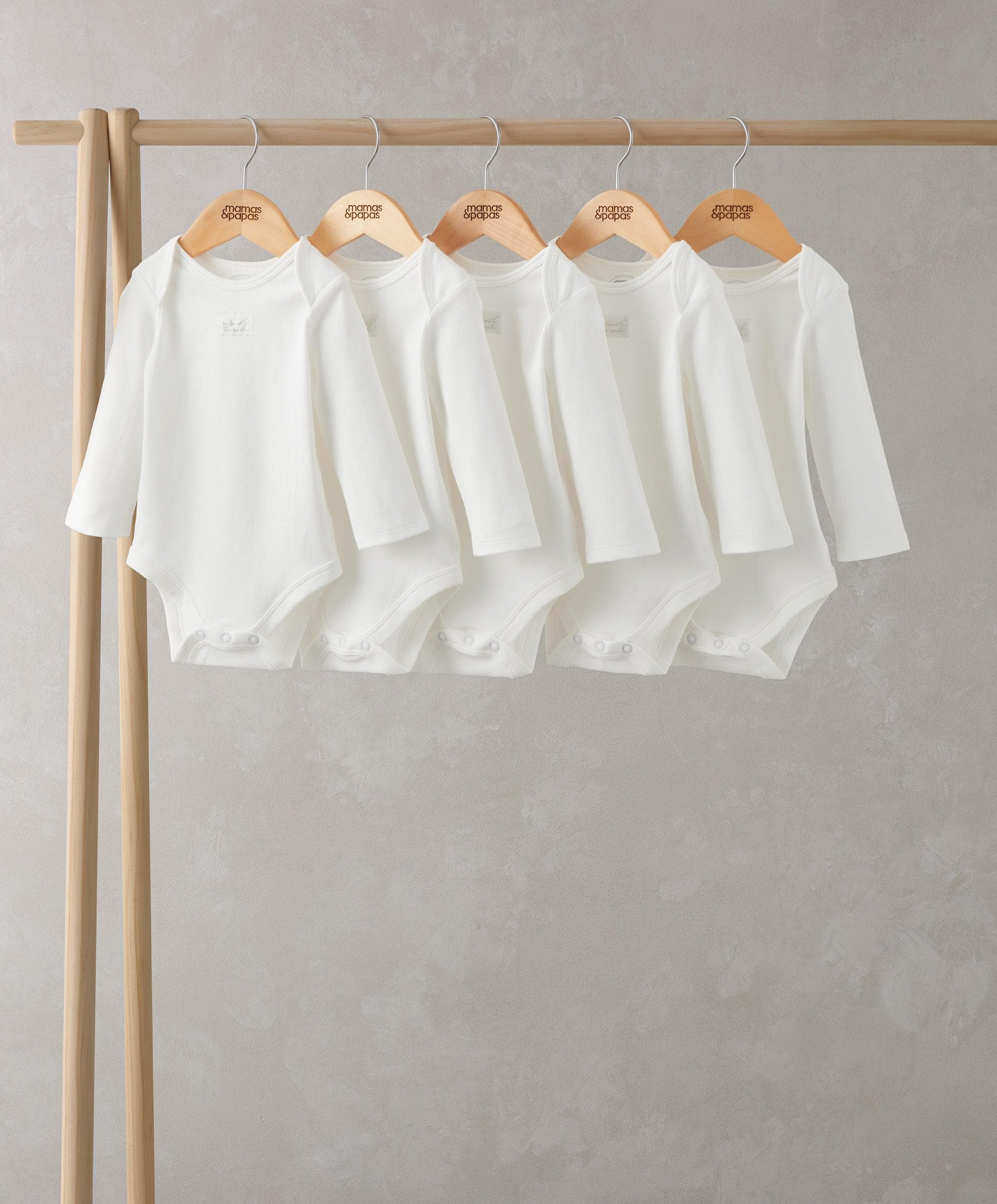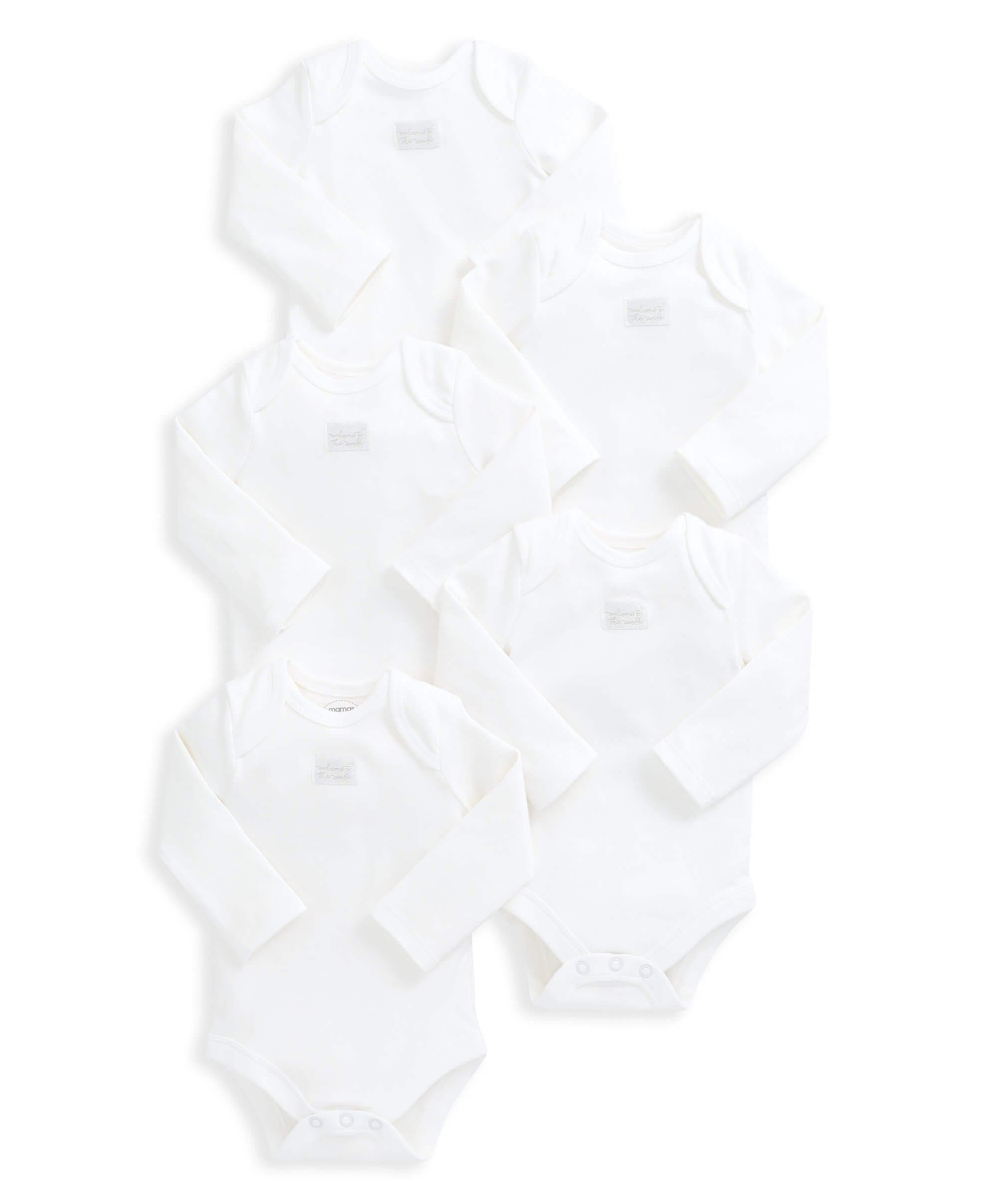 Handy 5-pack of pure white long-sleeved bodysuits in supersoft organic white cotton that's soft and gentle on newborn skin. Popper fastening for easy changes and finished with Welcome to the World woven badge detail.