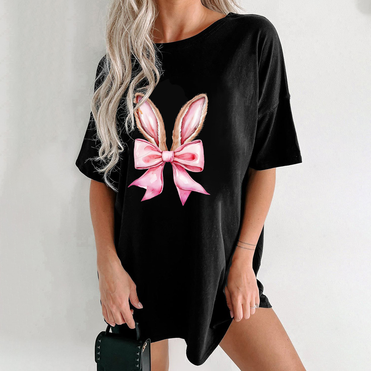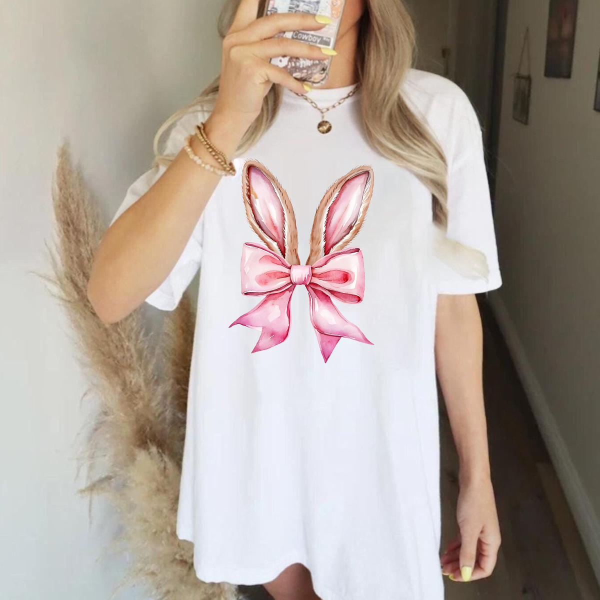 A Cartoon Pink Bunny Ears And Pink Bow Combination Pattern, Cute, Casual T-Shirt 9514646