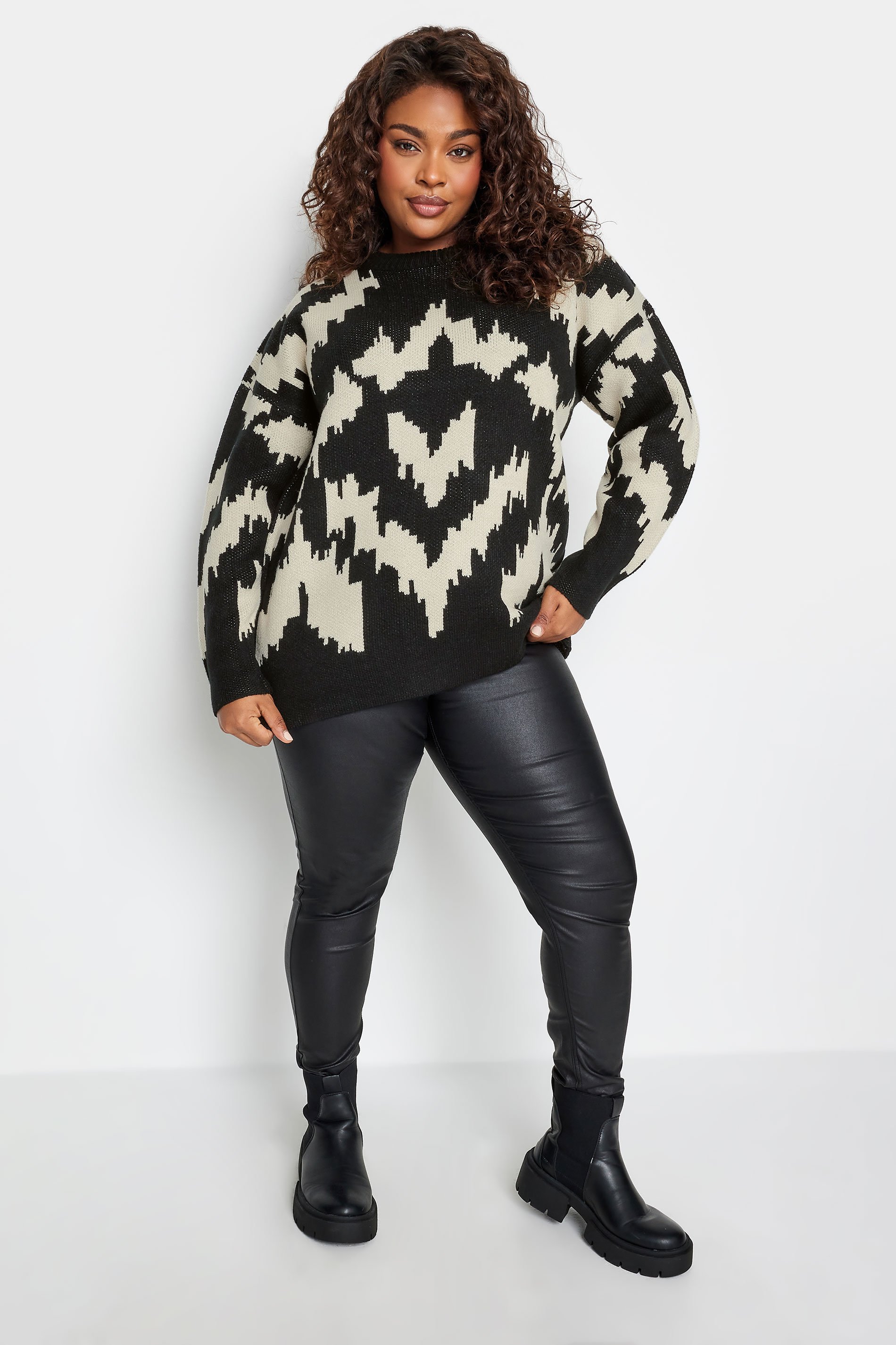 Elevate your knitwear collection this season with this new-in patterned jumper. Made from a comfortable knitted fabric, it features an abstract pattern design, crew neckline and long sleeves. Pair with jeans and boots for the perfect winter-ready casual look.
