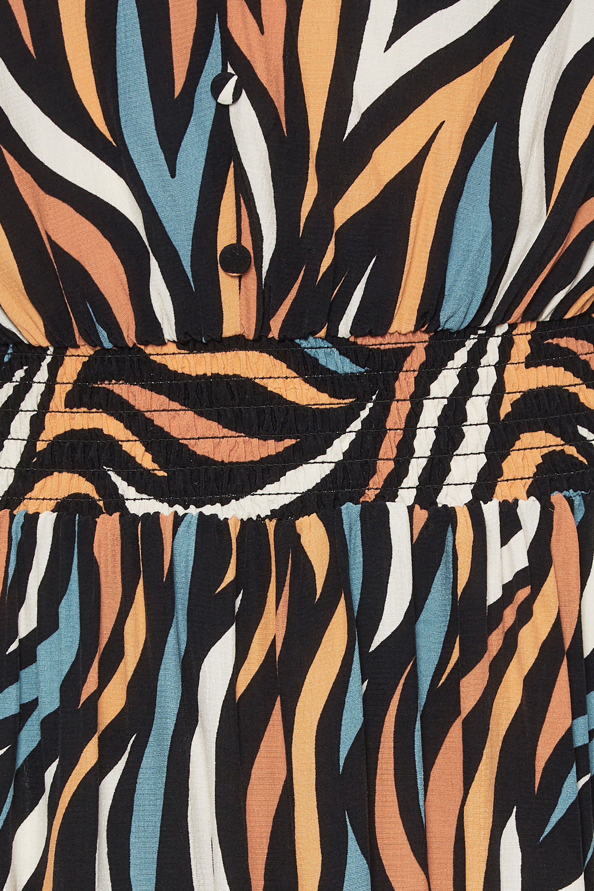 Add some funky print into your wardrobe. Made from a comfortable woven fabric this dress features long sleeves, a v-neckline, and a shirred waist. Style with sandals for a look you can wear with confidence.