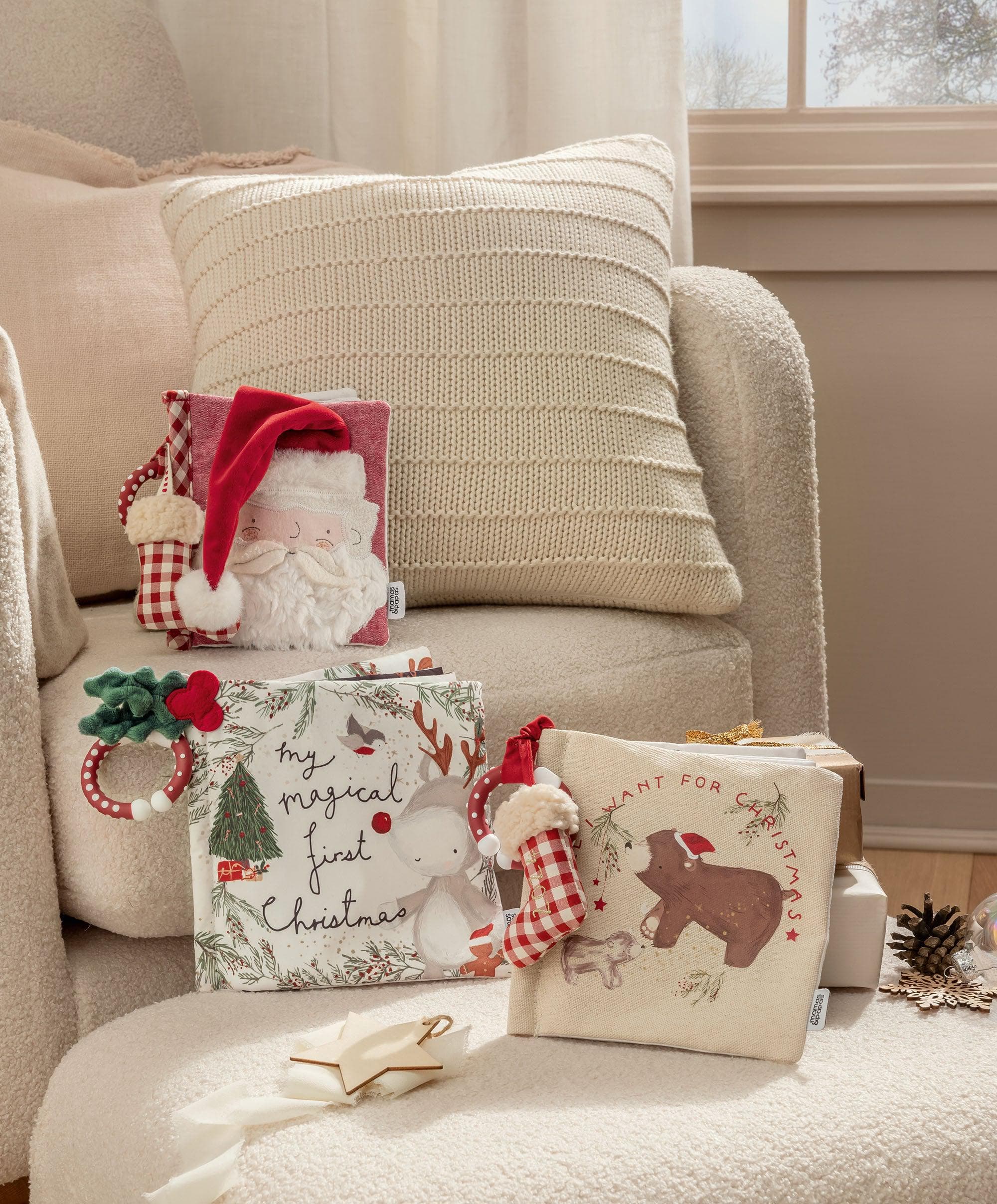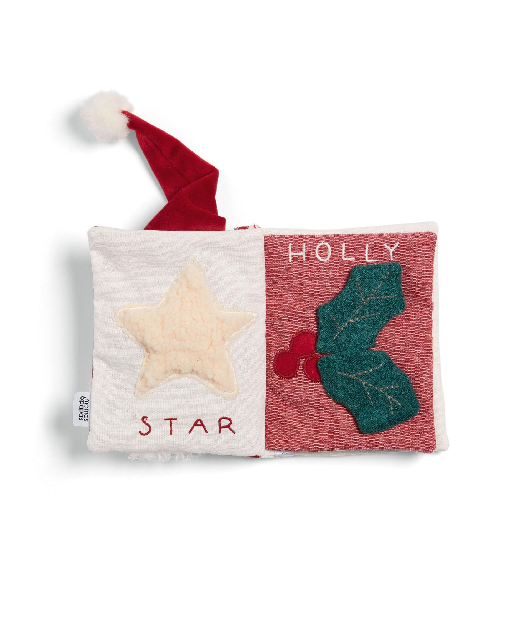 With less words but more to do this book focuses on a baby's developmental needs. Let them discover Christmas icons made from a noticeable range of materials and tactile fabrics - a 3D Santa with 'real' beard and hat, Borg fur star with a squeaker, crinkly 3D holly leaves, soft towelling ribbed present, a sparkly snowflake... the list goes on! A c-ring lets you connect it handily to their pushchair or car seat, and it also doubles as a teether.