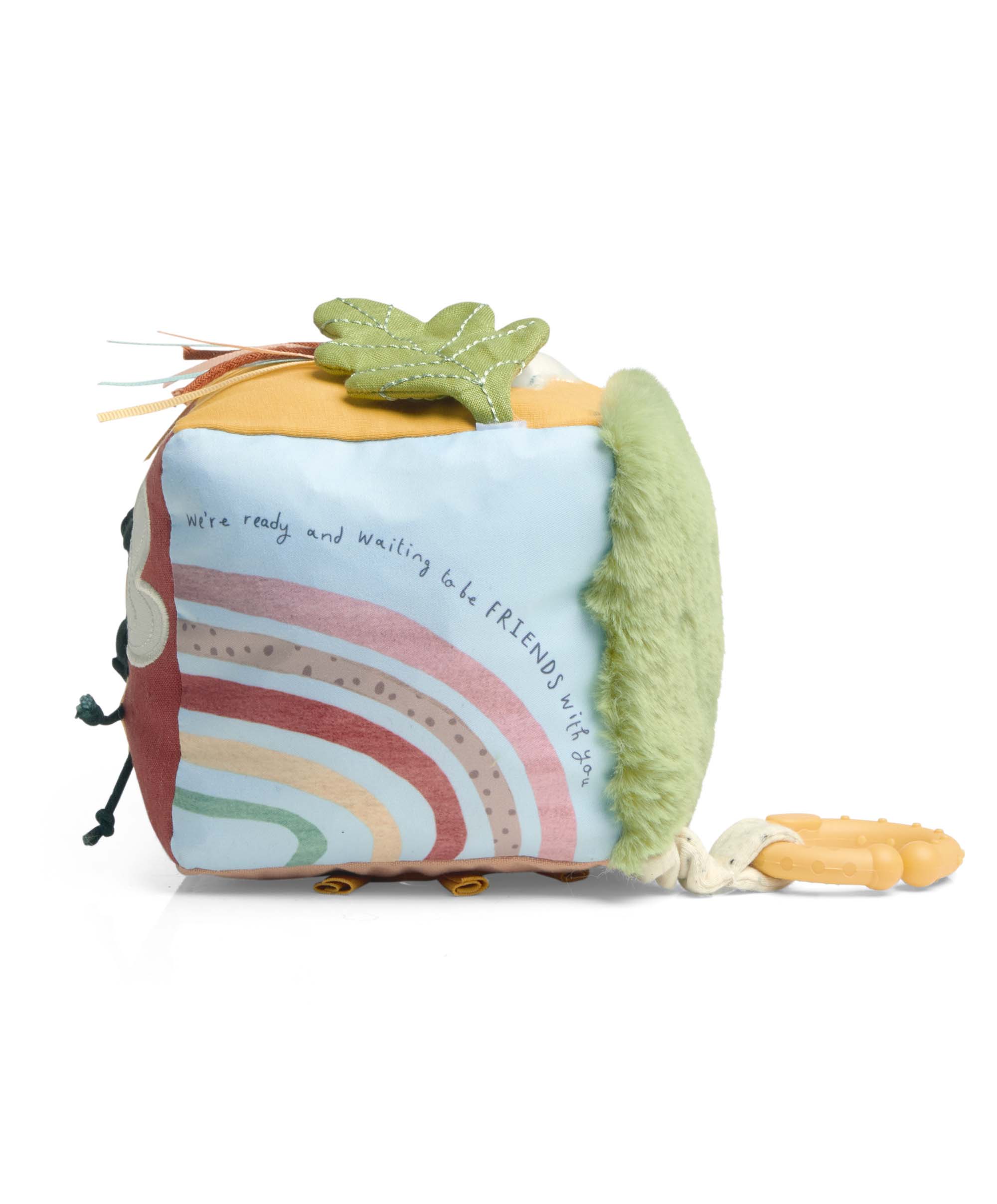 Those cute garden creatures have come together in this fun soft activity cube. With 7 interactive features, different textures to explore and a teething ring, it will engage their senses, stimulate their imagination, and hone their motor skills!