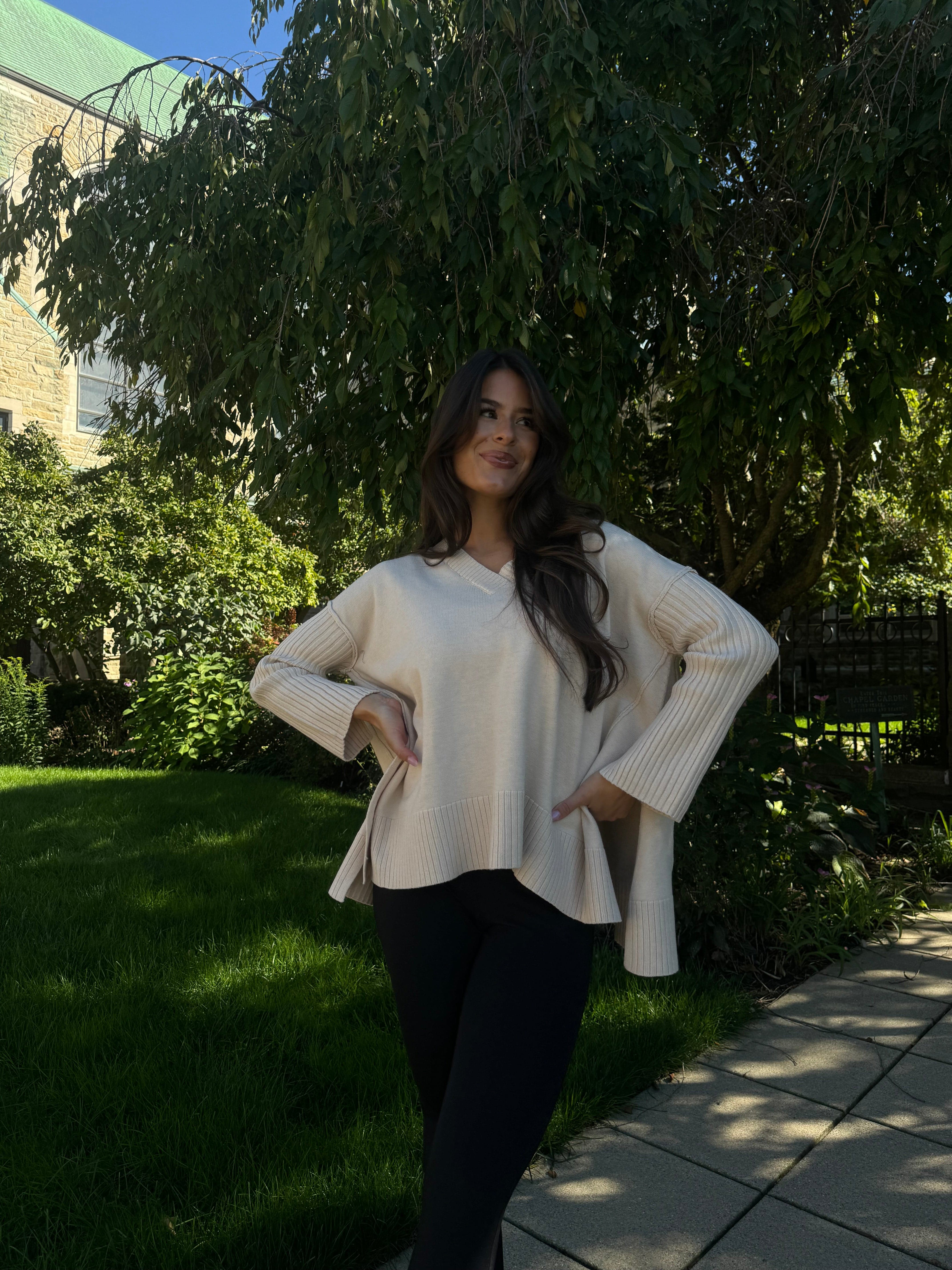 Stay cozy and stylish in our Adorably Cozy Sweater. With long sleeves and an oversized, loose fit, this sweater provides both comfort and on-trend fashion. Its cozy material will keep you warm and snug, making it the perfect addition to your winter wardrobe.