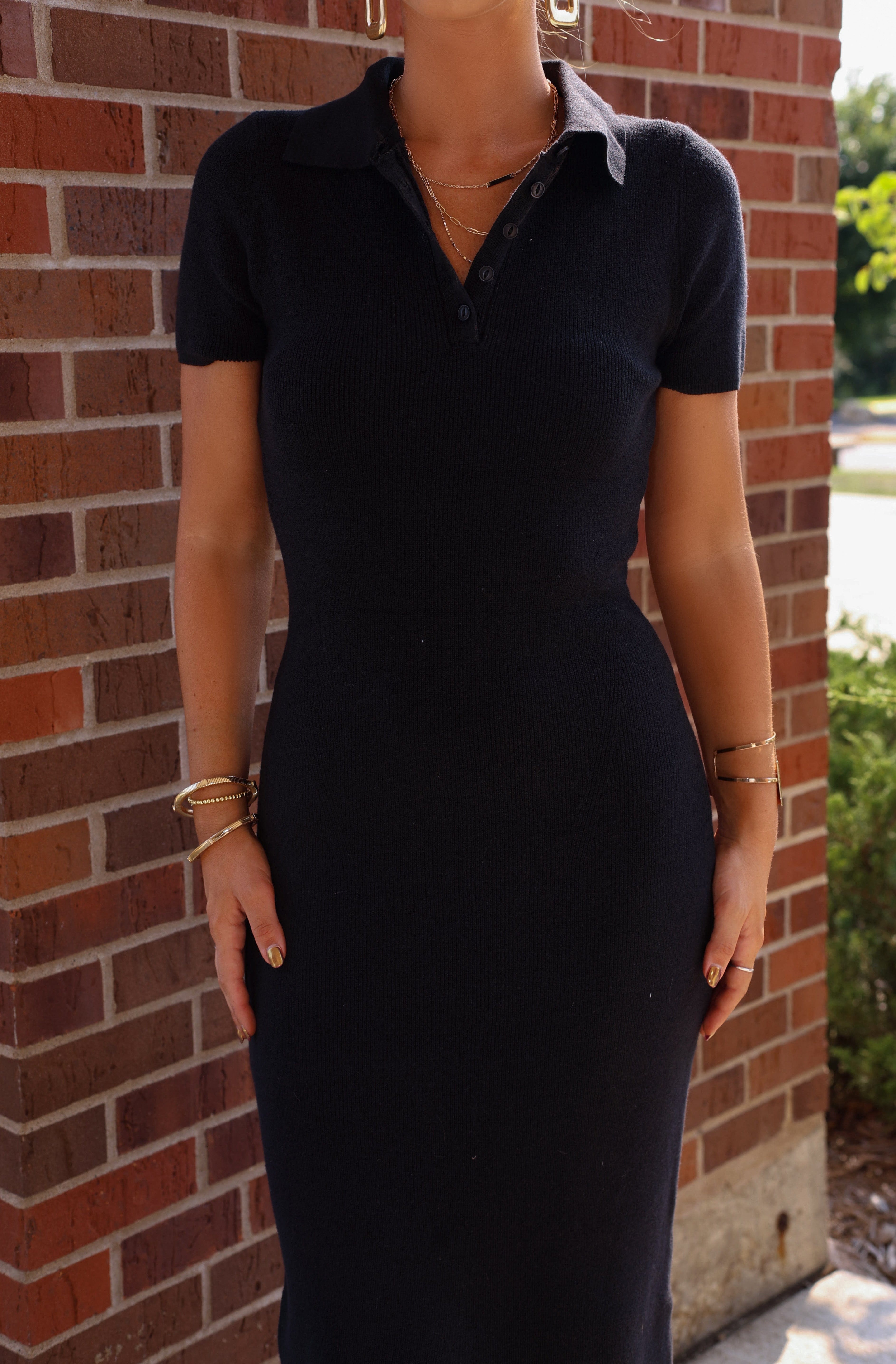 Unleash your inner fashionista with the After Hours Maxi Dress. This sleek black dress features a timeless collar and chic buttons. Perfect for a night out on the town, this dress will have you looking effortlessly stylish all night long!