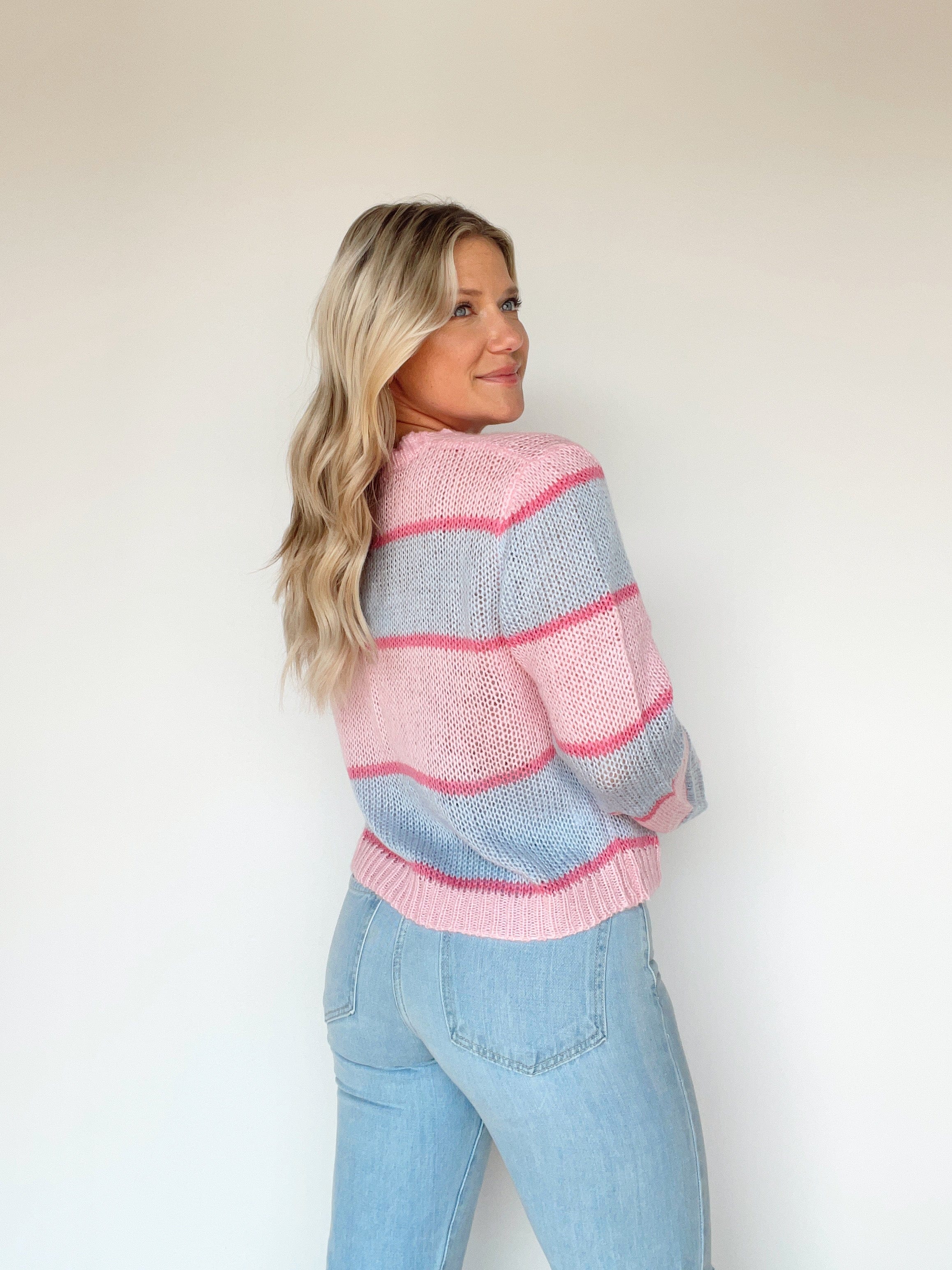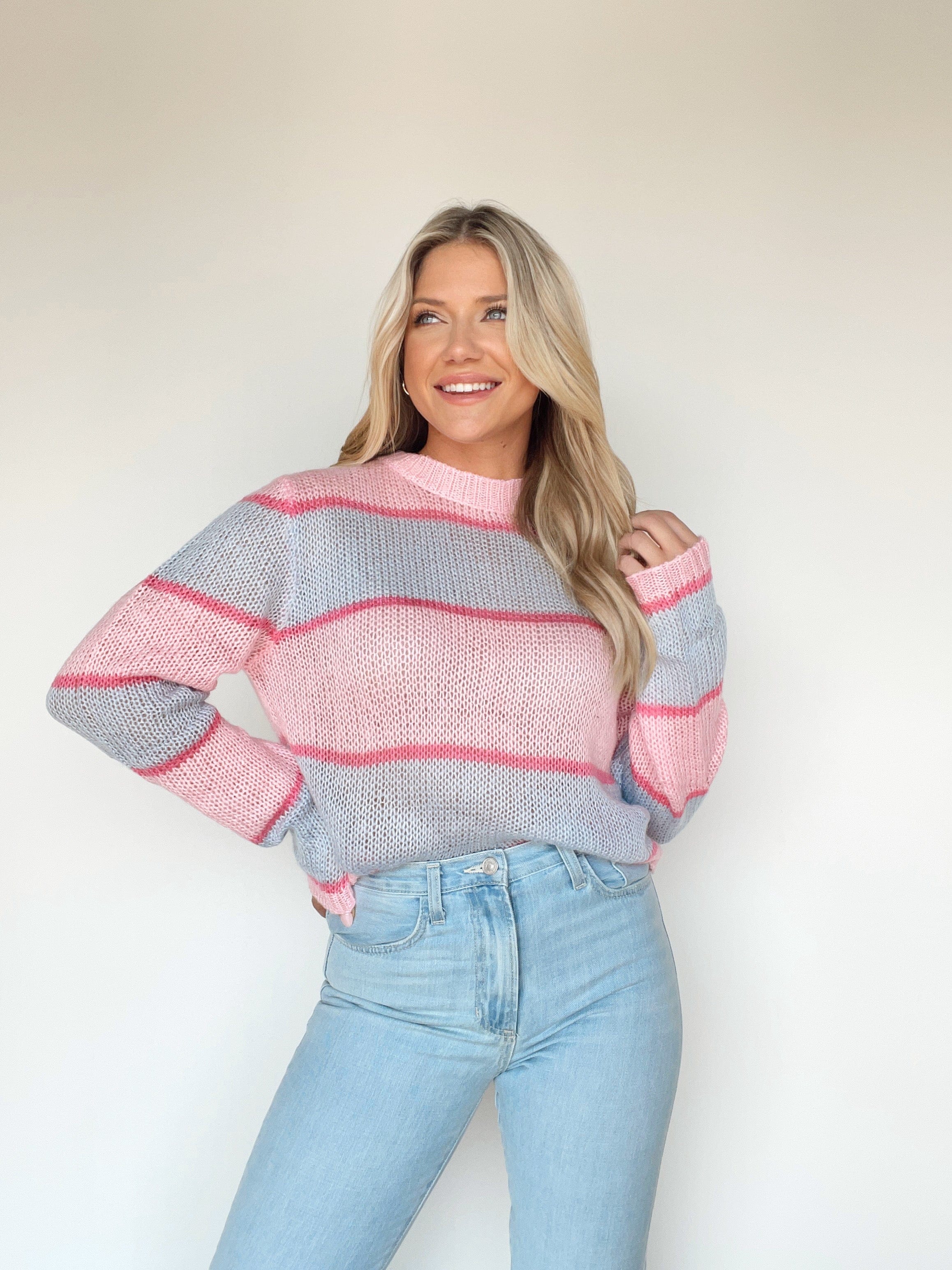 Experience the ultimate blend of comfort and style with the All The Time Sweater. Crafted in a luxuriously lightweight knit with a stretchy, relaxed fit, this sophisticated striped mock neck creates a truly unique look with an elevated statement and a vibrant pop of color. Keep cozy and enjoy a fun, yet refined style all the time.