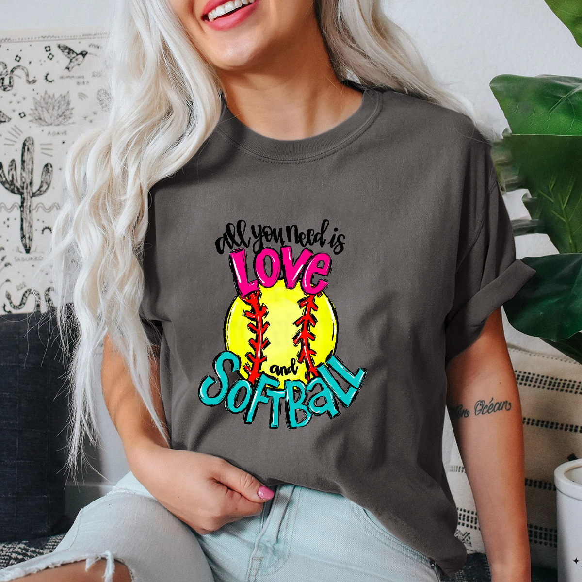 All You Need Is Love And Softball Printed Round Neck Short Sleeve T-Shirt