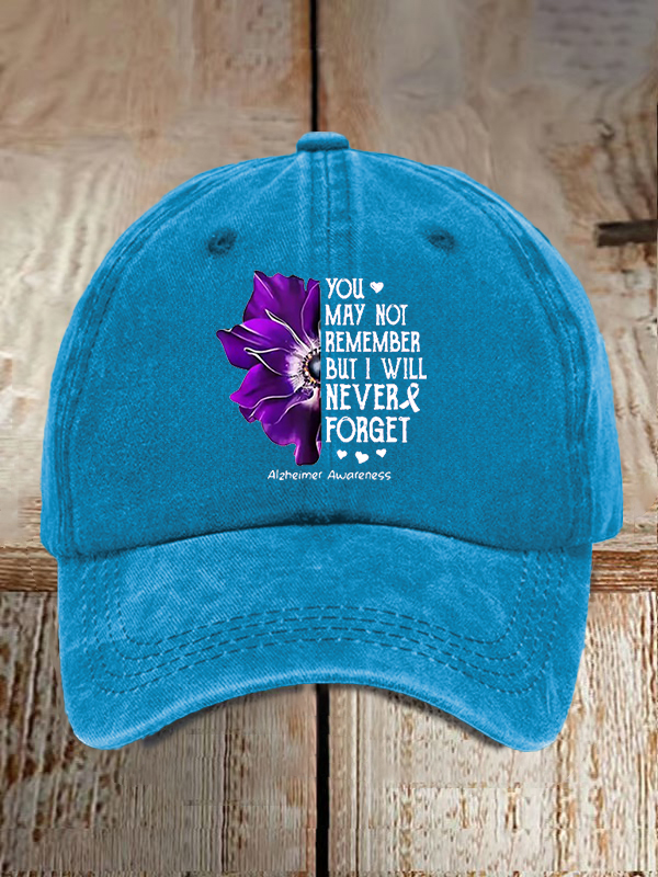 Alzheimer'S Awareness You May Not Remember But I Will Never Forget Print Baseball Cap 9530726