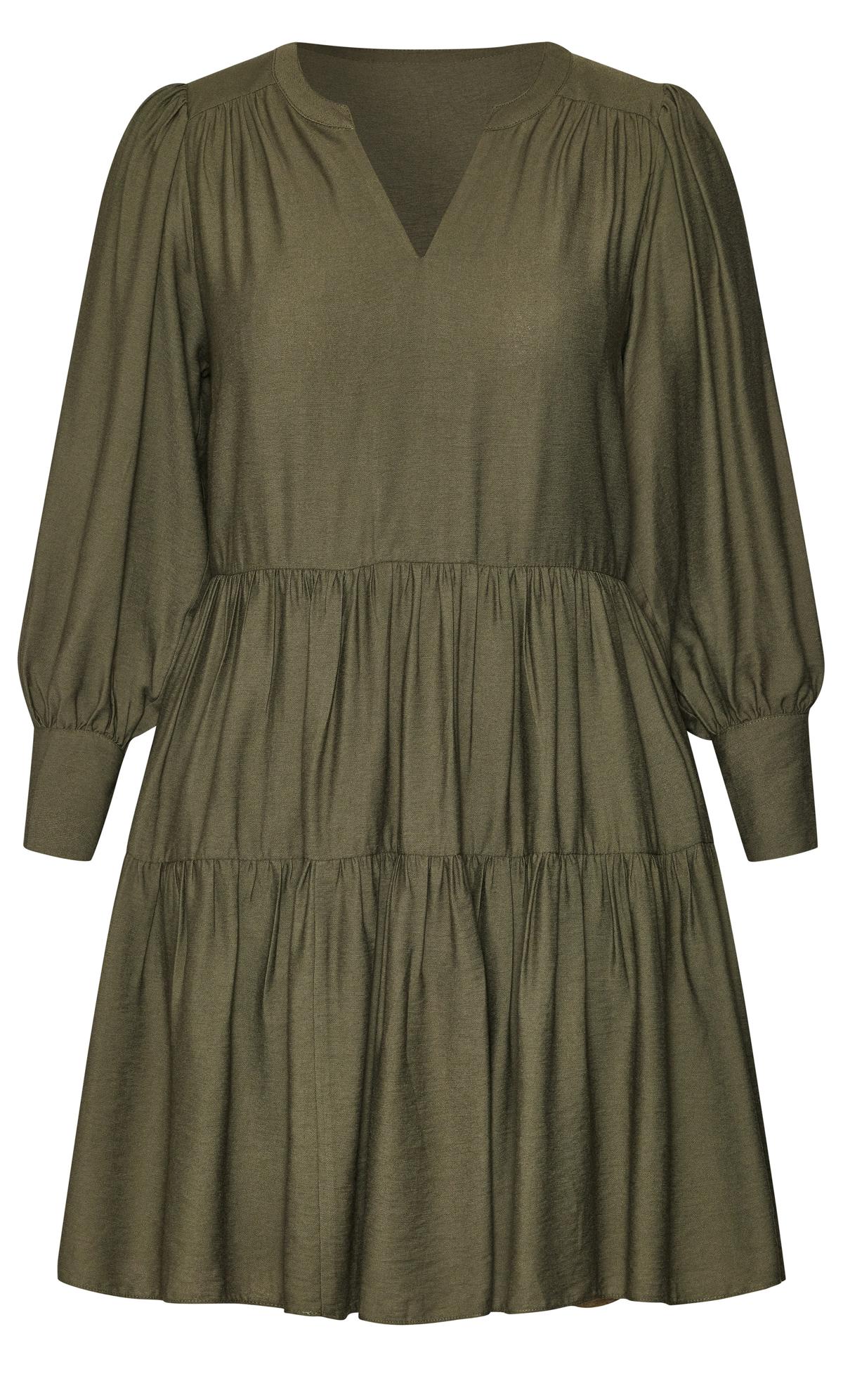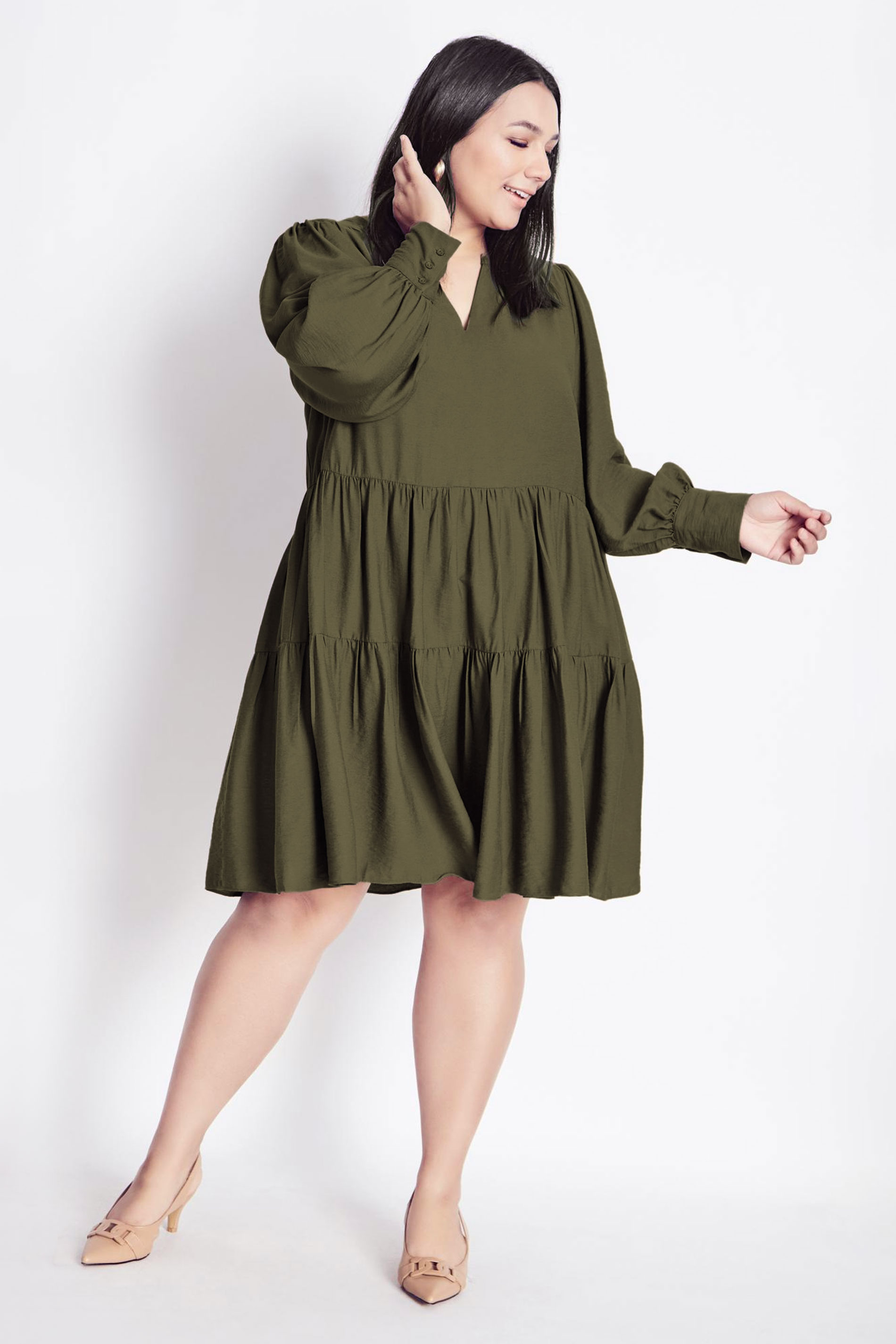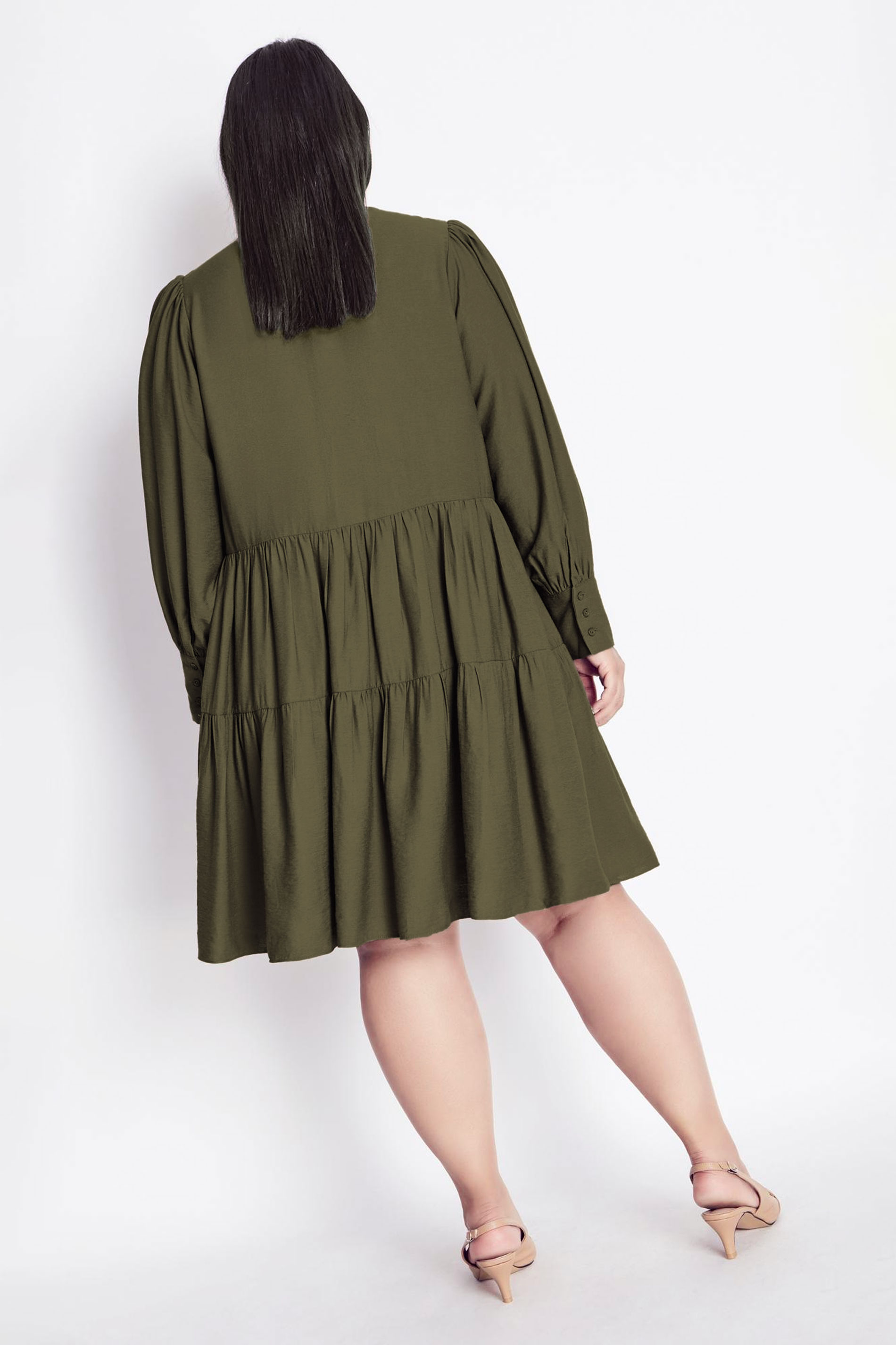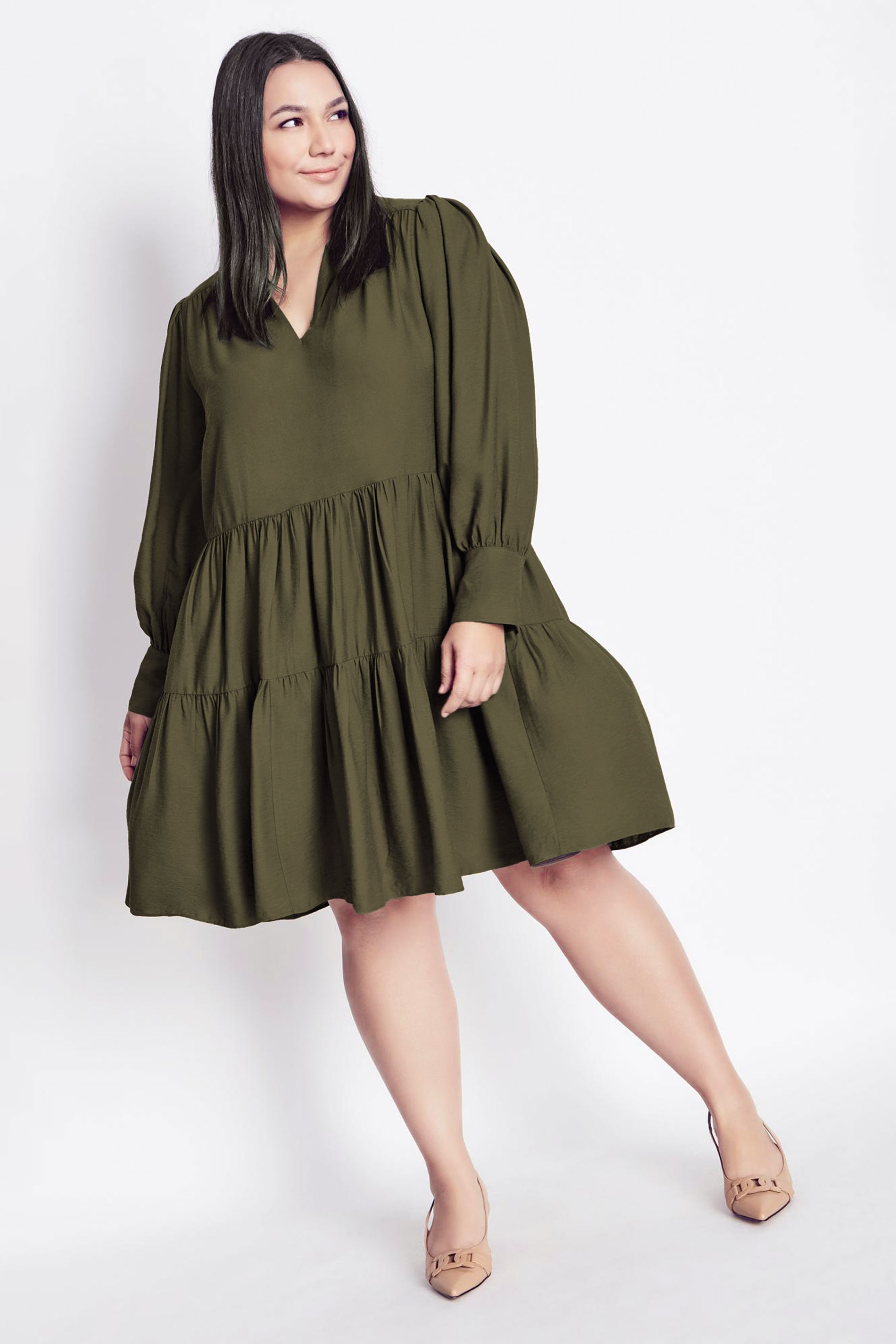 Give it up for the Bianca Tiered Dress. Simple and refined, this dress exhibits a notch V-neckline, a darted bust and a tiered skirt, making it the curve-loving dress of your dreams.