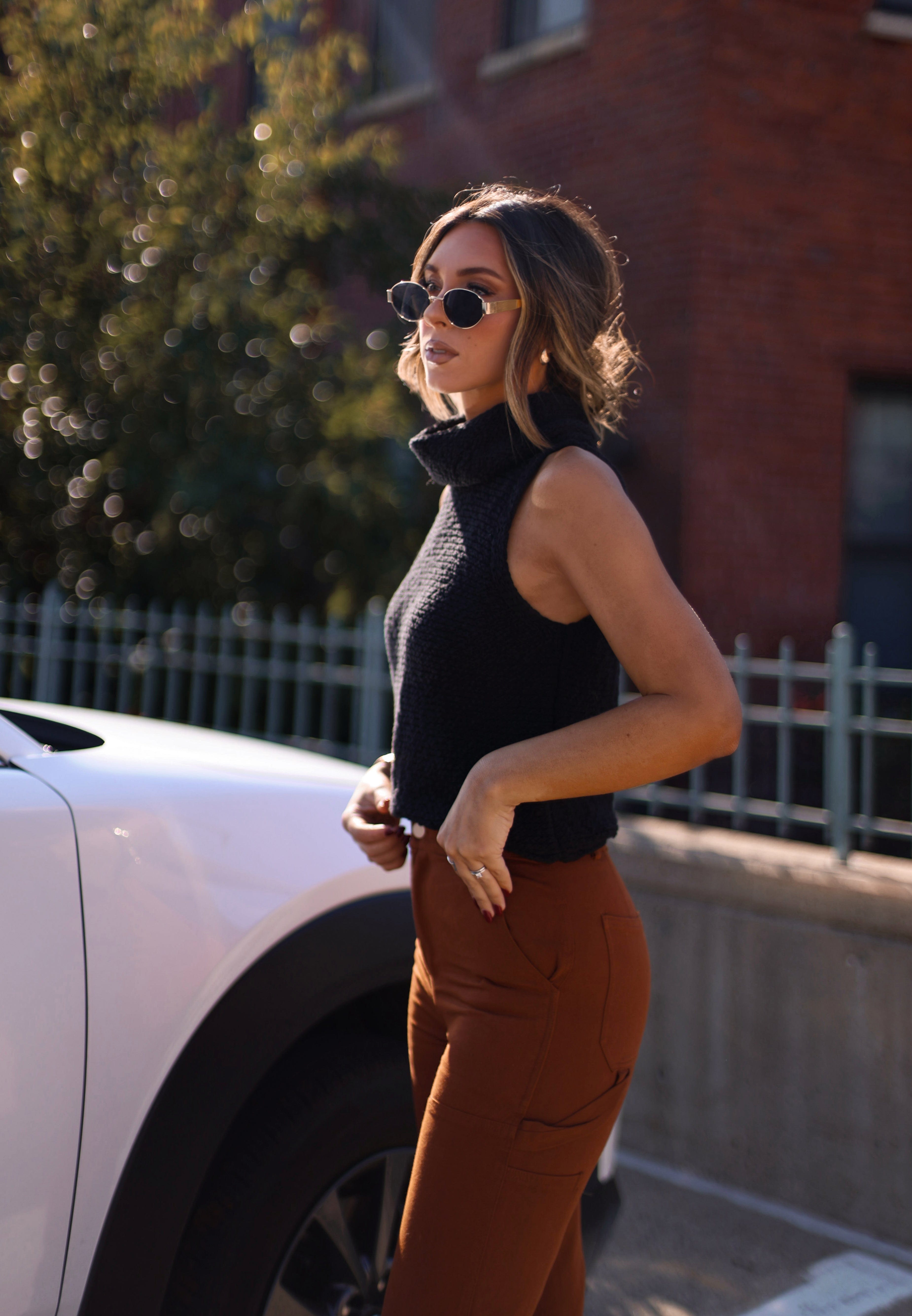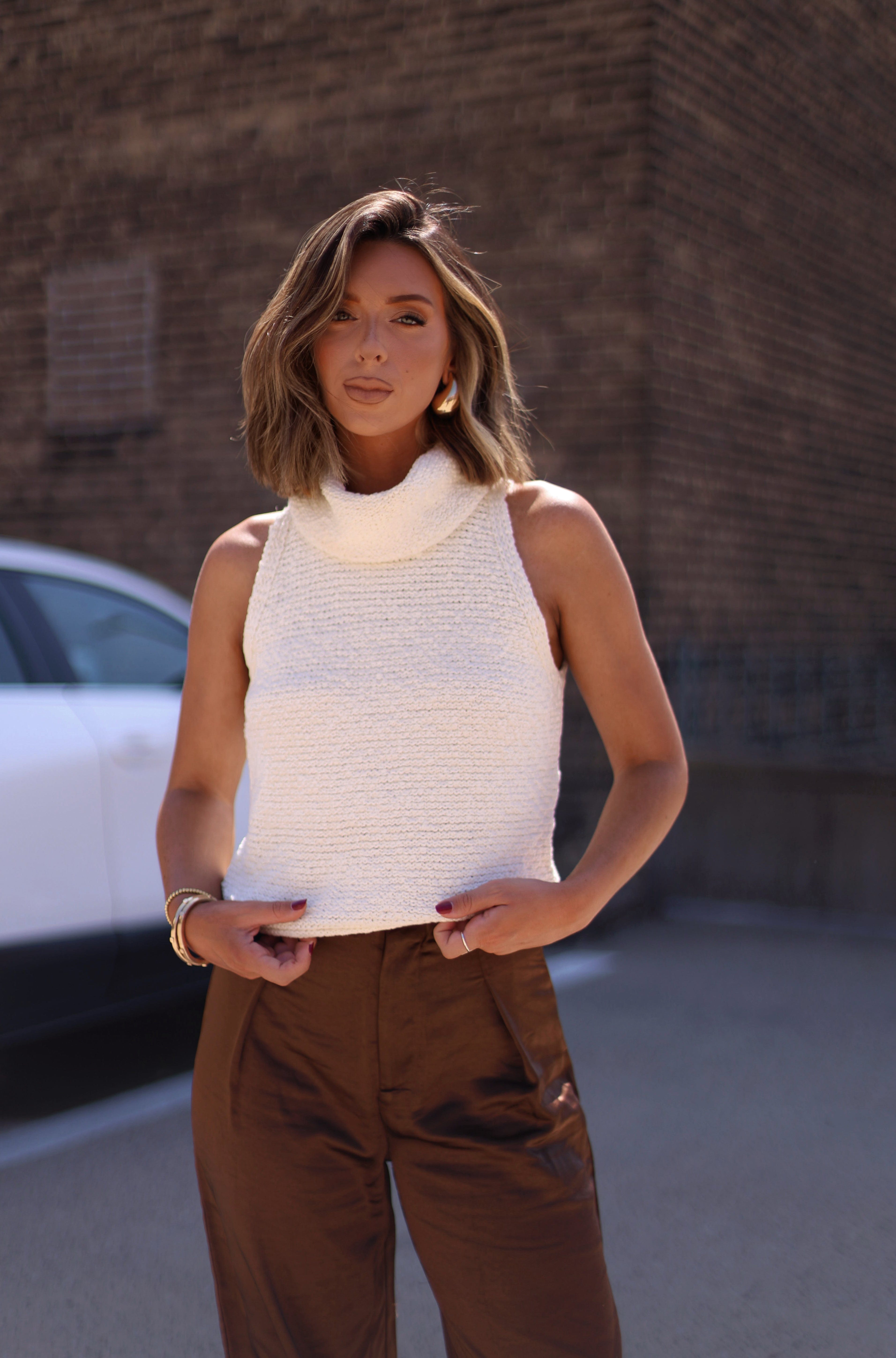 The Autumn Allure Top is a sophisticated staple designed to elevate any wardrobe. This chic turtleneck tank features a plush, chunky knit with a soft stretch, making it a perfect transitional piece this fall. Combining trendy style with casual versatility, it's the perfect choice for the trendsetter with discerning tastes.