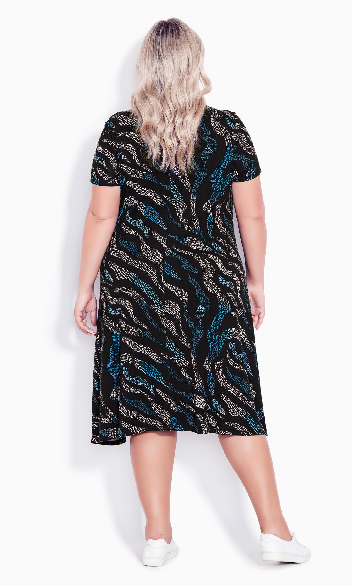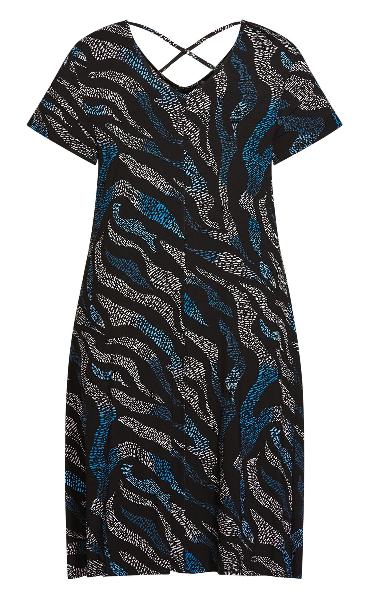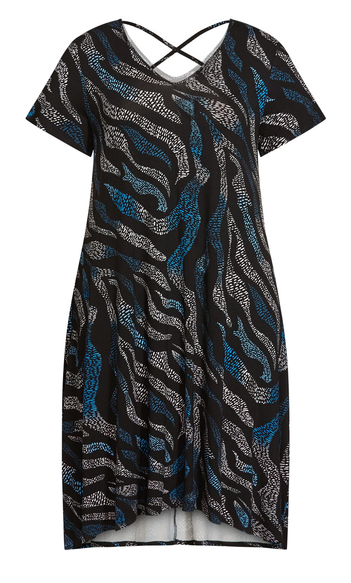 Ease into comfort with the black Cross Back Knit Print Dress. The cross-back detailing adds some spice to this relaxed shape, finished with a soft stretch fabrication and short sleeves.