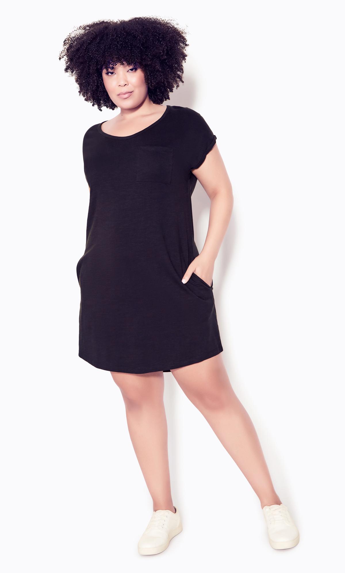 Flaunt your curves in the versatile t-shirt dress. A gorgeous and curve-flattering casual look, this style is finished with a scoop neckline, short sleeves and functional side pockets. Keep it casual with a pair of white trainers.