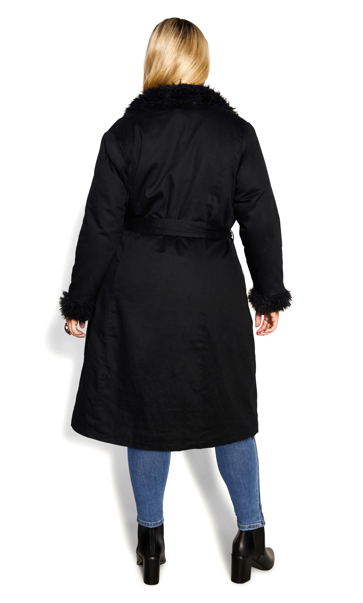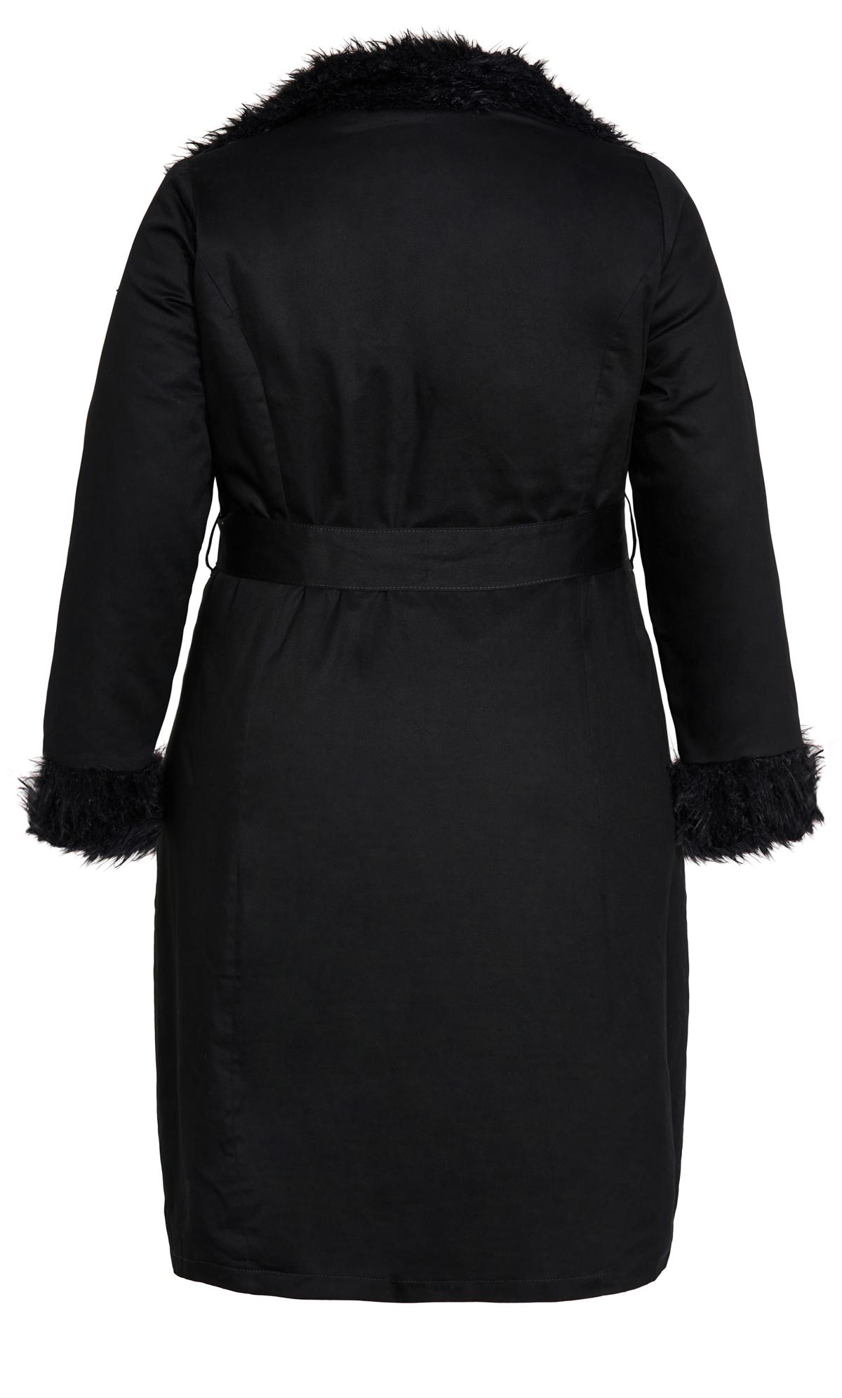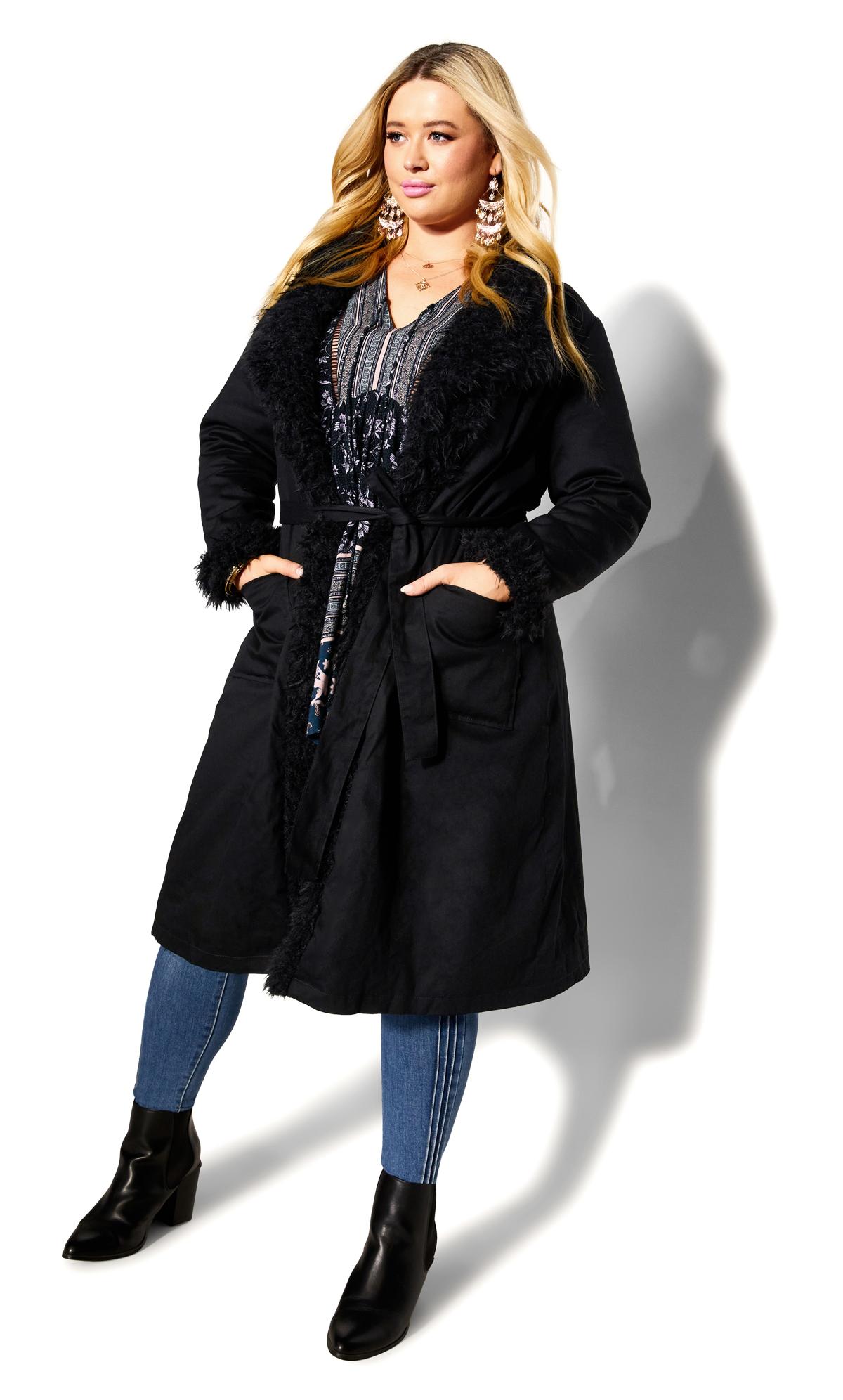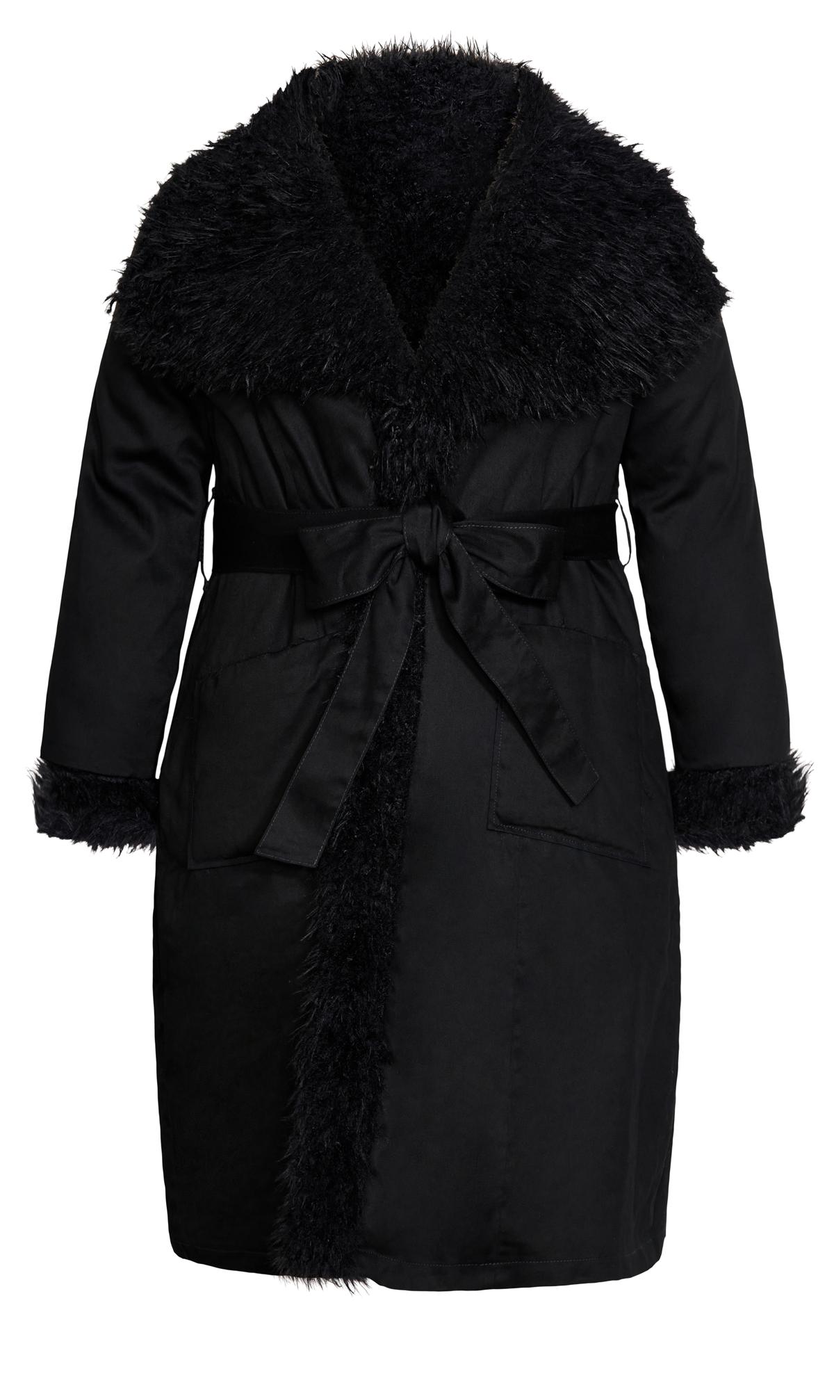 The Avenue Black Faux Fur Trim Tie Waist Coat is the embodiment of luxury and refined style. Draped in a sumptuous black, this coat boasts a lavish faux fur trim that exudes opulence, while its tie waist feature ensures a flattering silhouette. Whether worn over elegant evening attire or a casual day ensemble, this coat promises to envelop you in warmth and timeless sophistication, making it a winter wardrobe essential.