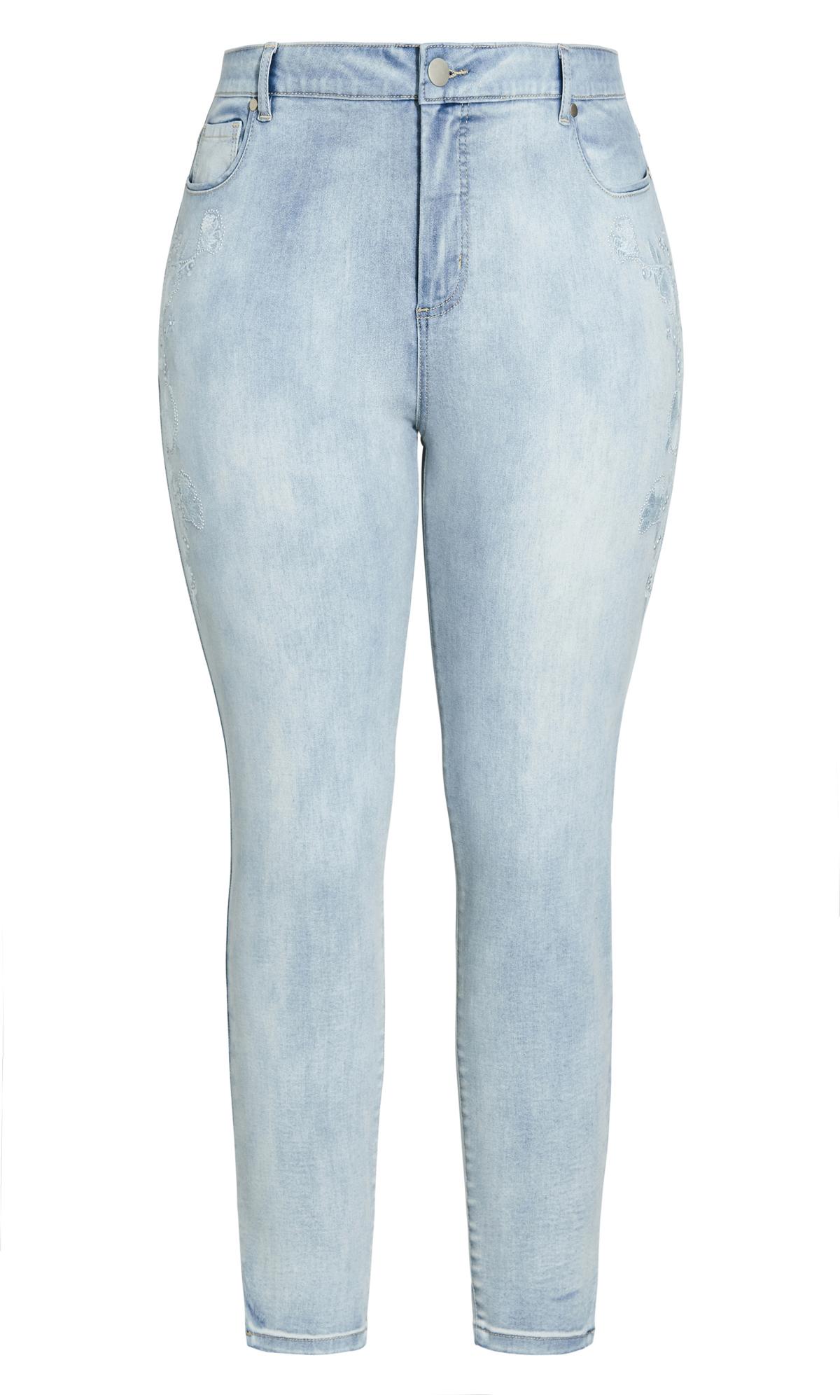 Evans Blue Mid Wash Denim Suri Embroidered Jean