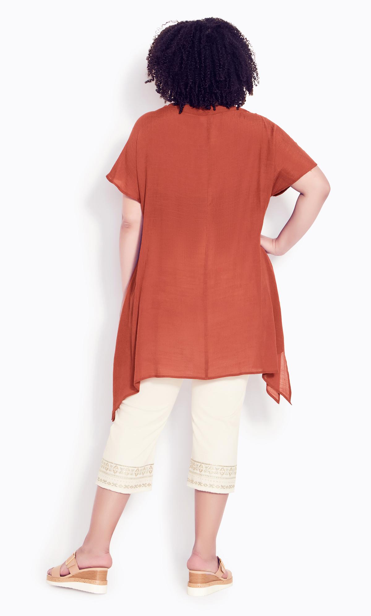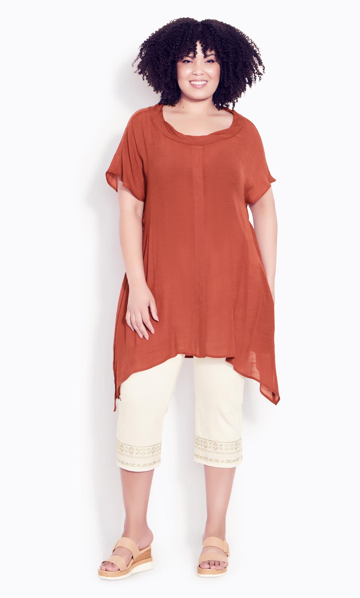 Elevate your style with the Avenue Terracotta Hanky Hem Tunic. The warm terracotta hue and unique hanky hem design offer a blend of sophistication and flair. This tunic effortlessly combines fashion and comfort, making it a versatile choice for various occasions. Embrace relaxed elegance with a touch of modern charm in this essential piece.