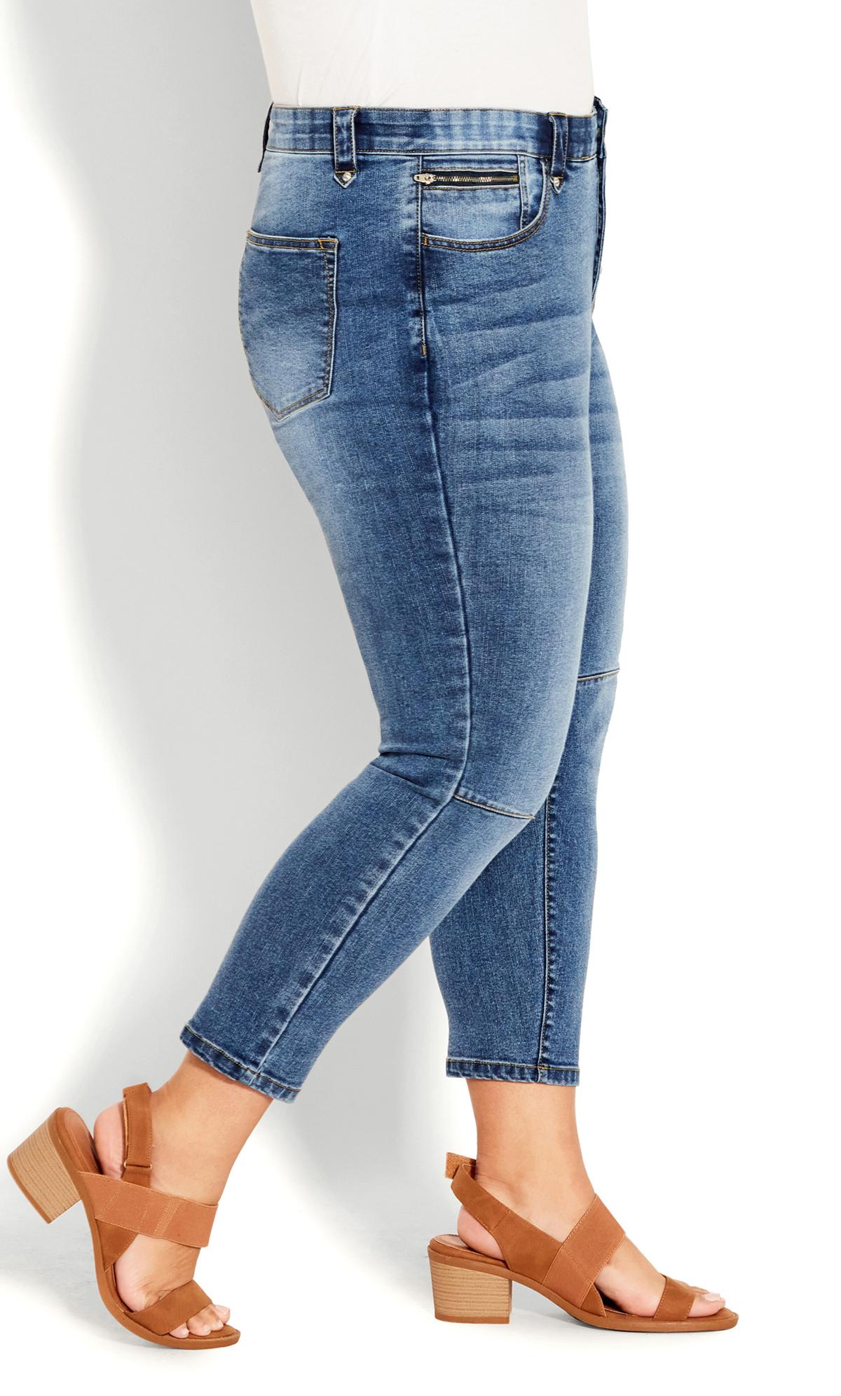 Elevate your denim game with Avenue's Blue Mid Wash Skinny Jeans. These jeans seamlessly blend style and comfort, featuring a versatile mid wash design that exudes timeless cool. Whether for casual outings or dressed-up moments, make a fashionable statement with these essential skinny jeans that embody both ease and fashion.