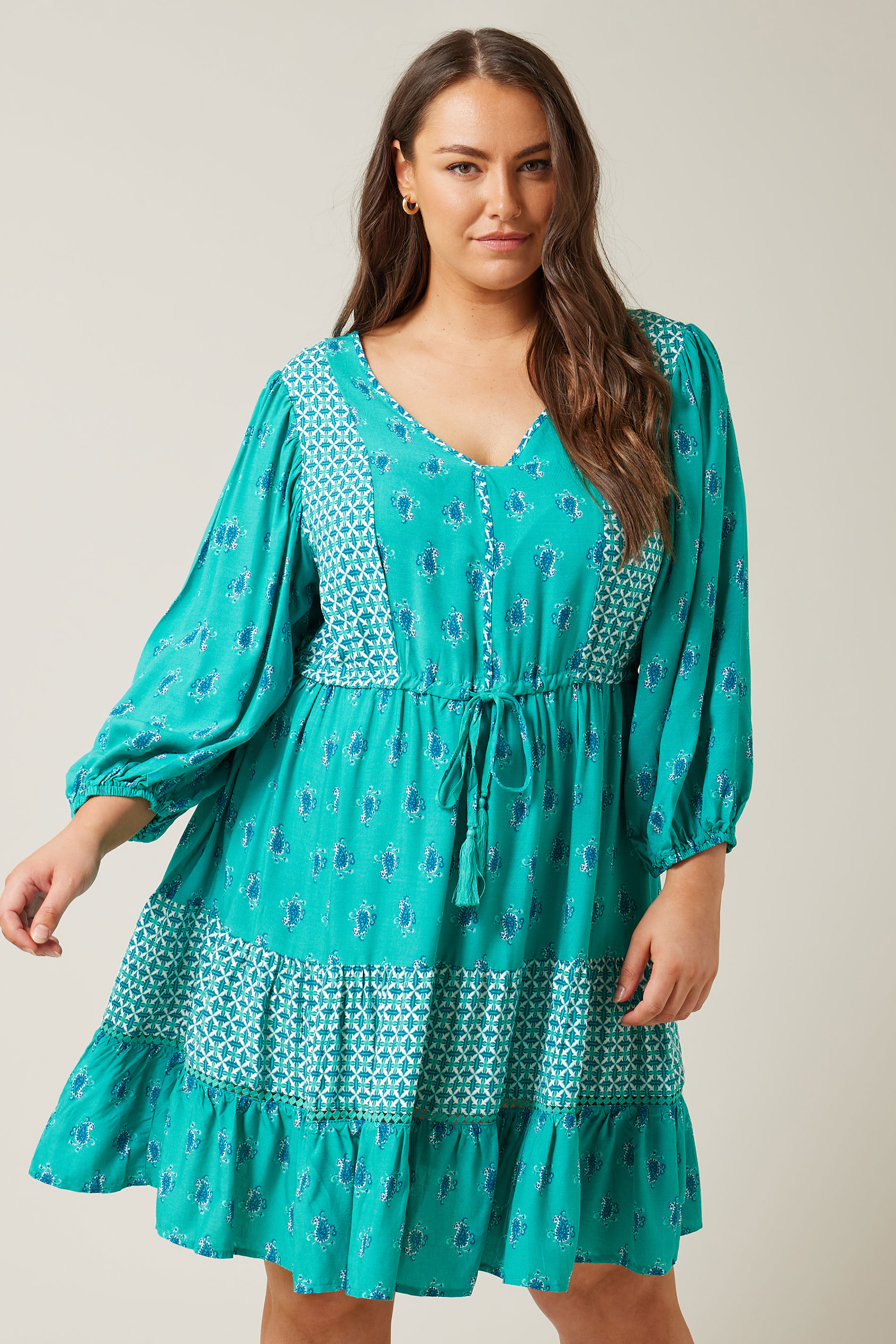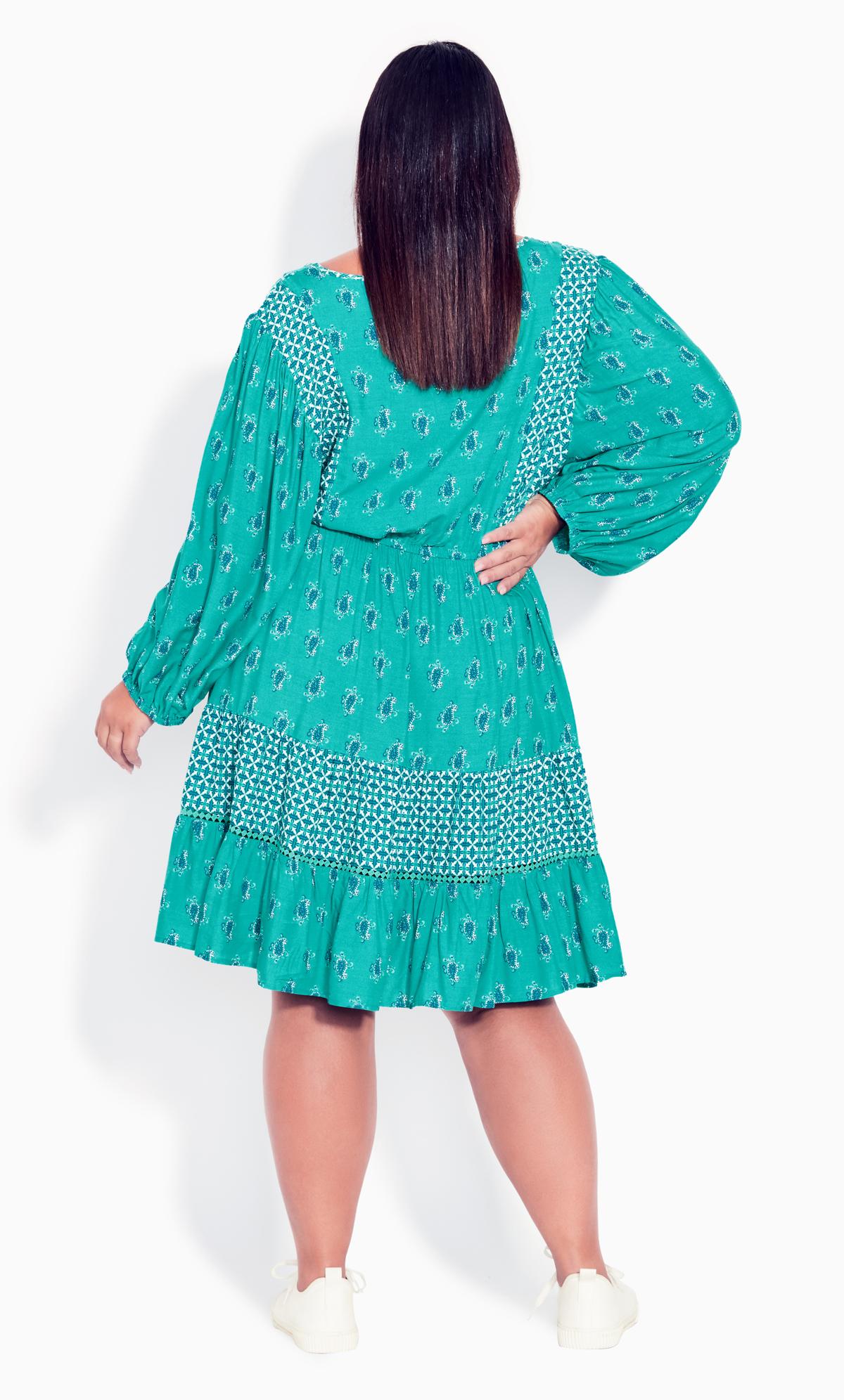 Be fearlessly fabulous in the Cast Away Dress. Flaunting a lively aquamarine hue with full-length puff sleeves and a tiered skirt design, you'll be flirting the night away.