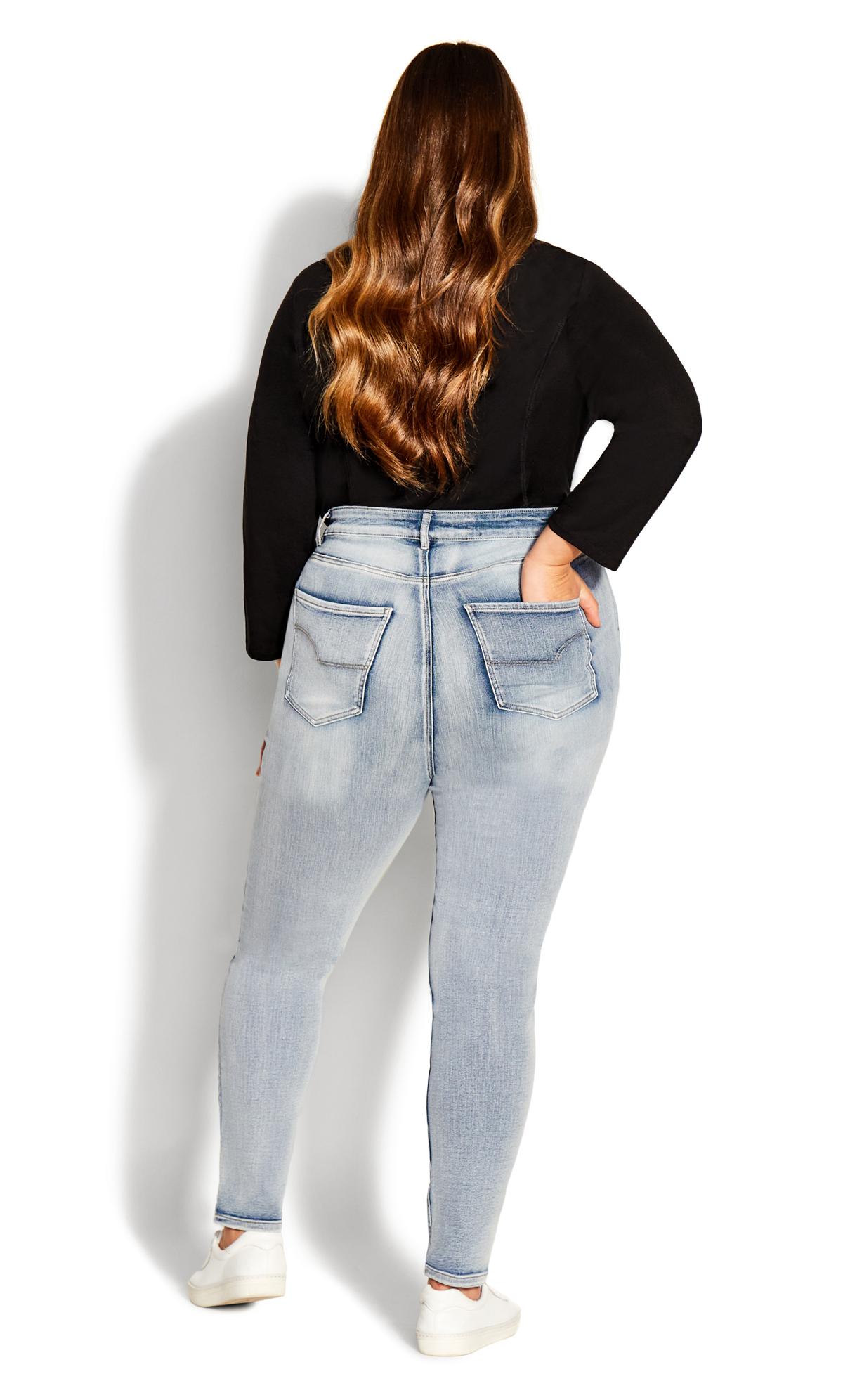 Strut your way into new season styling wearing the Slim Fit Jean Light Blue Wash. Matching a stretch denim fabrication with a high rise and slim fit, you'll be reaching for this pair on repeat!