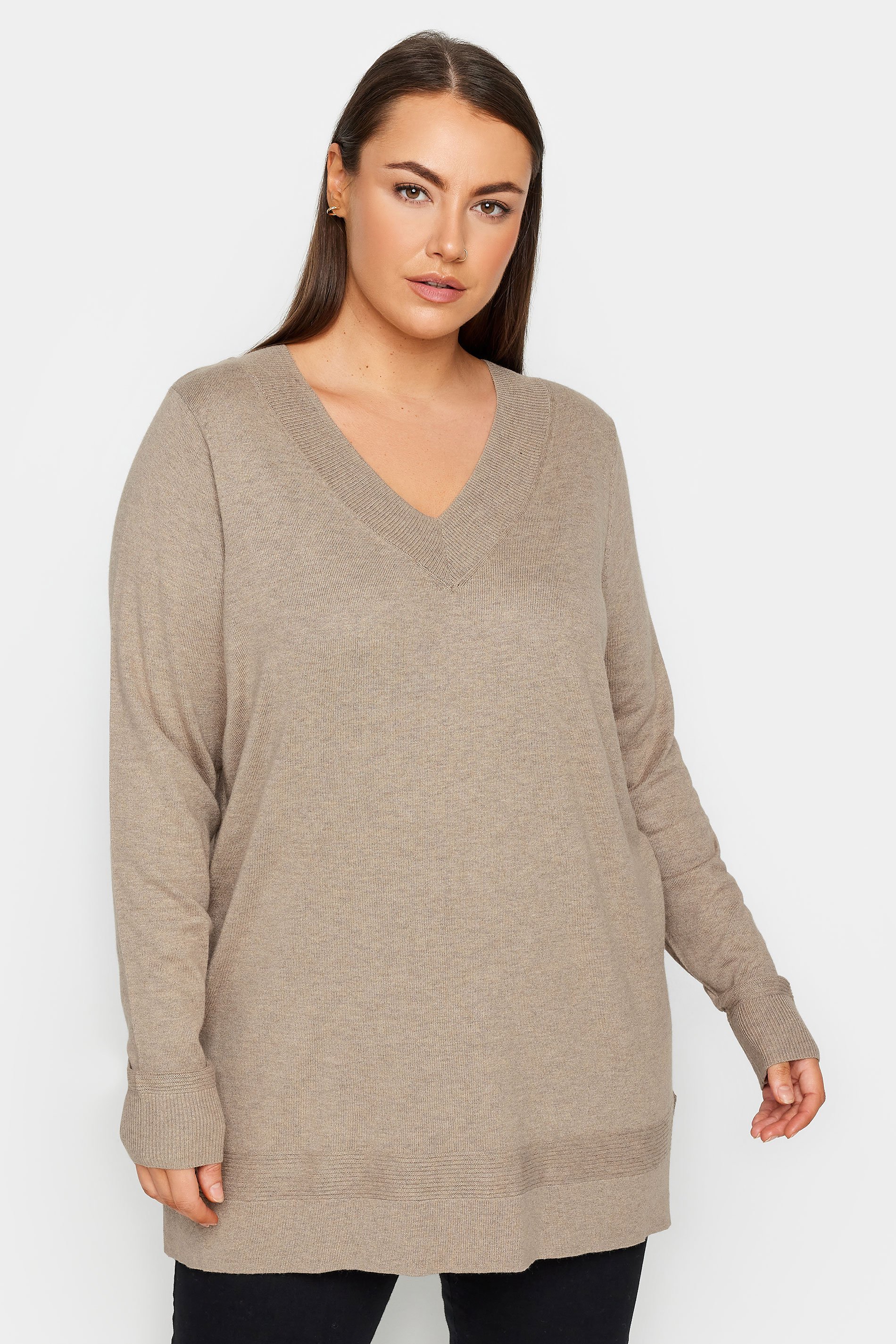 Elevate your cozy wardrobe with the Evans Beige Brown V-Neck Jumper. The warm beige and brown tones combine in a timeless V-neck design, offering both comfort and style. Embrace versatility and comfort with this jumper, perfect for layering or as a statement piece on its own.