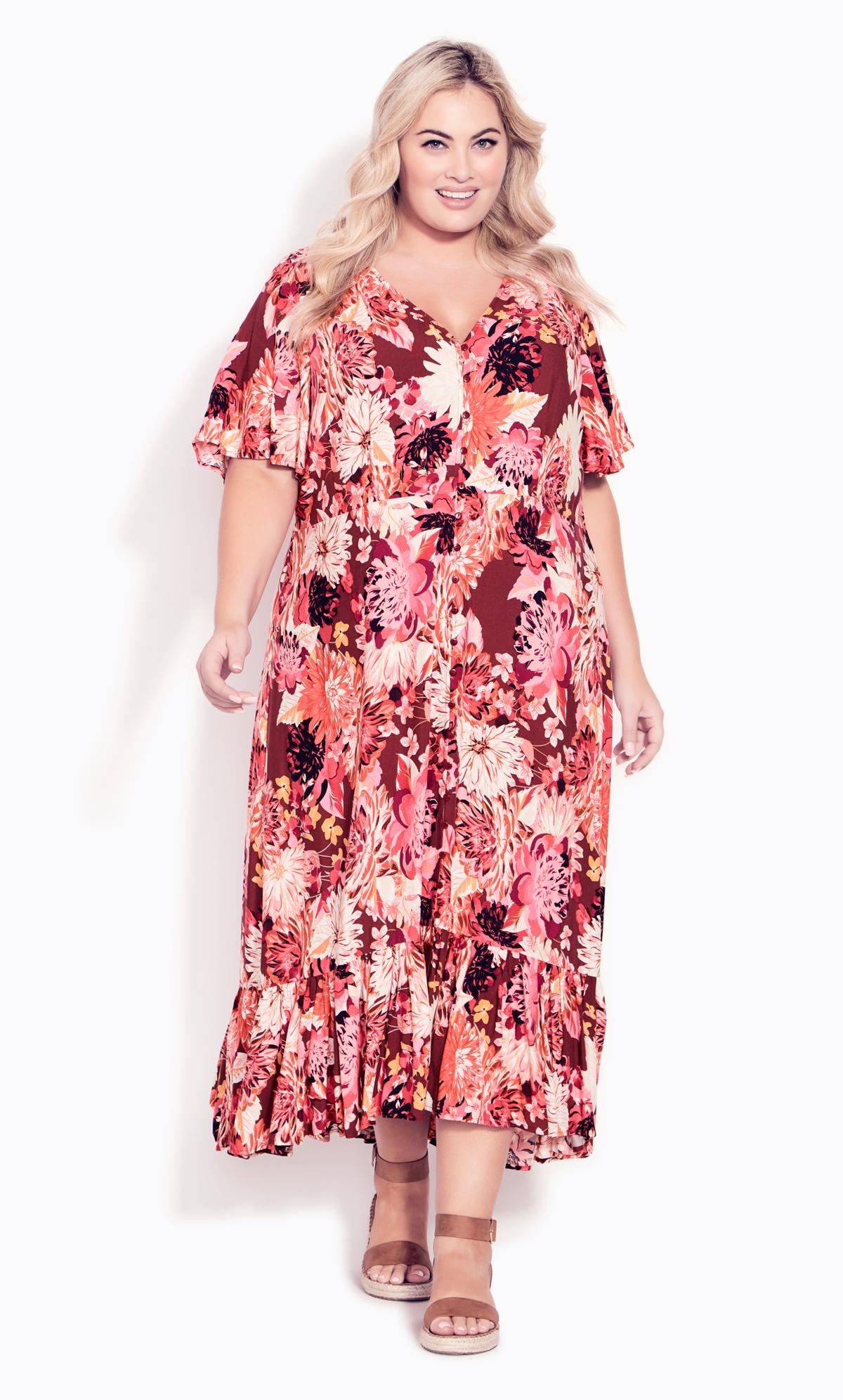 Step into summer elegance with the Avenue Pink Floral Frill Hem Midaxi Dress. Its delicate floral pattern and charming frill hem create a versatile and stylish silhouette. Whether it's a garden party or a casual day, this dress effortlessly combines comfort and grace.