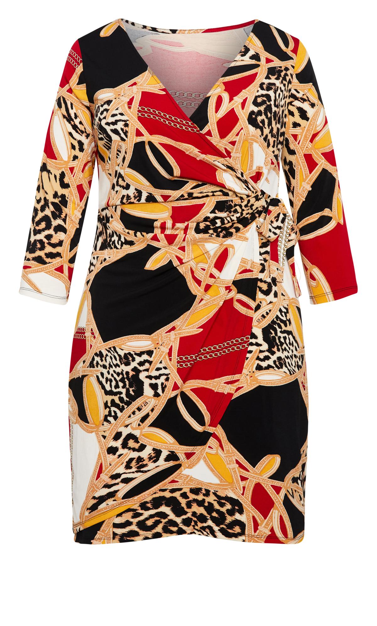Embrace your inner wild with the Avenue Animal Chain Print Bodycon Wrap Dress. The bold animal chain print meets a figure-hugging bodycon silhouette in a striking wrap design. Versatile for both casual and dressed-up occasions, this dress adds a touch of fierce fashion to your ensemble, making it a standout choice