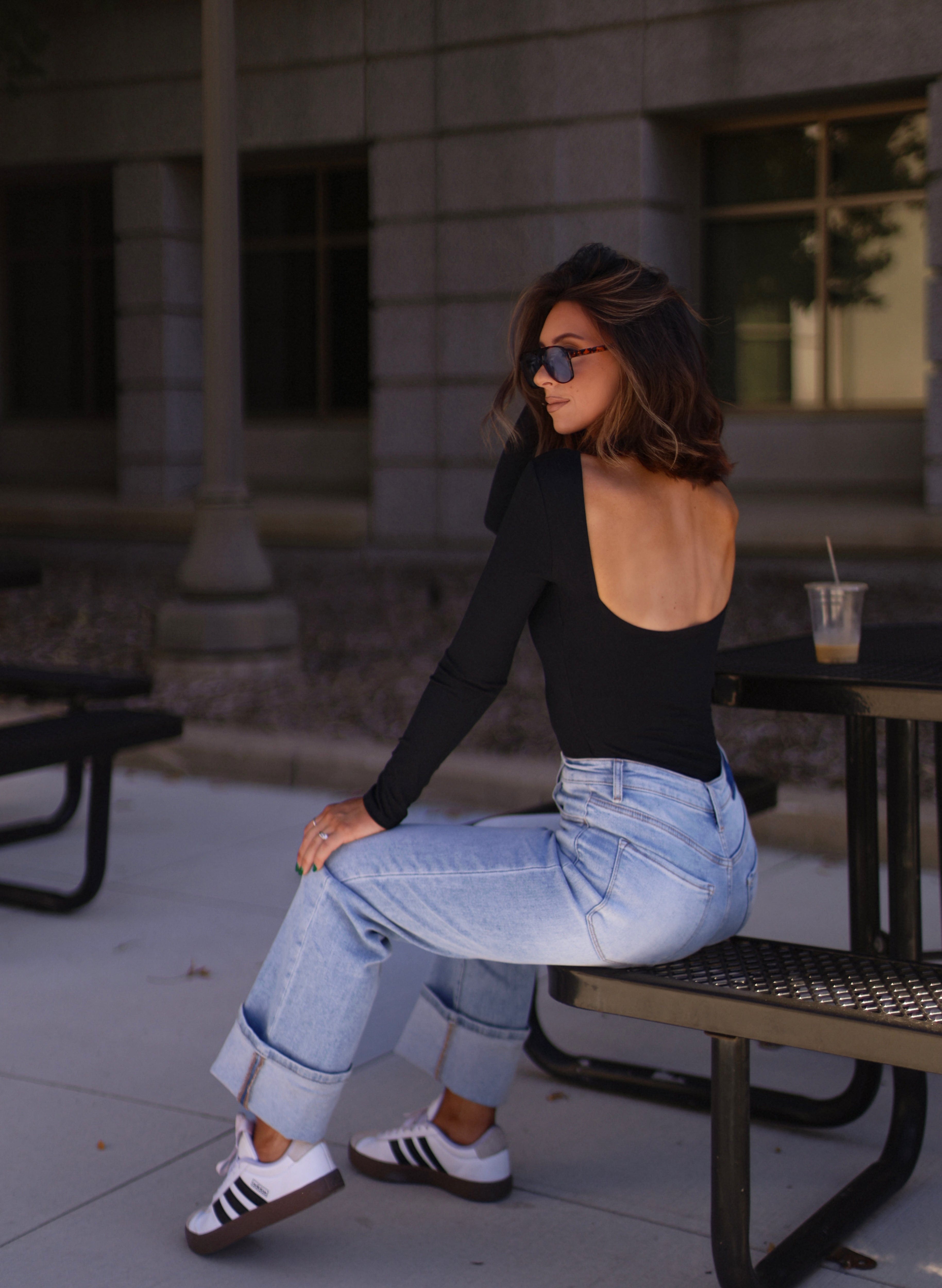 Get back to basics with our Back To Basic Top. Featuring long sleeves and a low cut back, this top is both stylish and comfortable. Perfect for any occasion, it's the essential addition to your wardrobe.