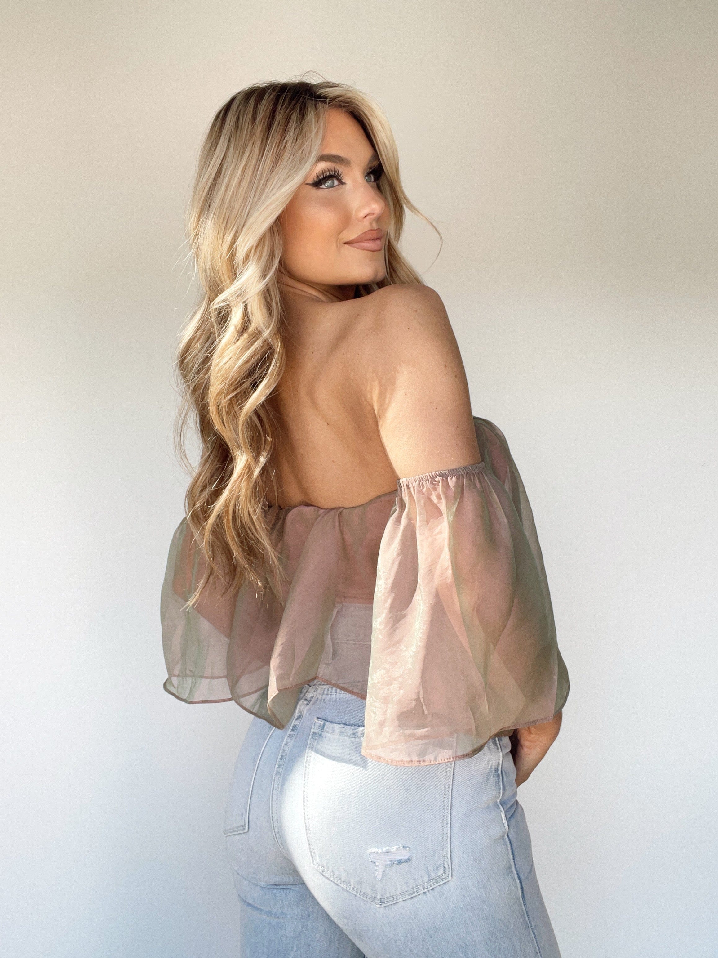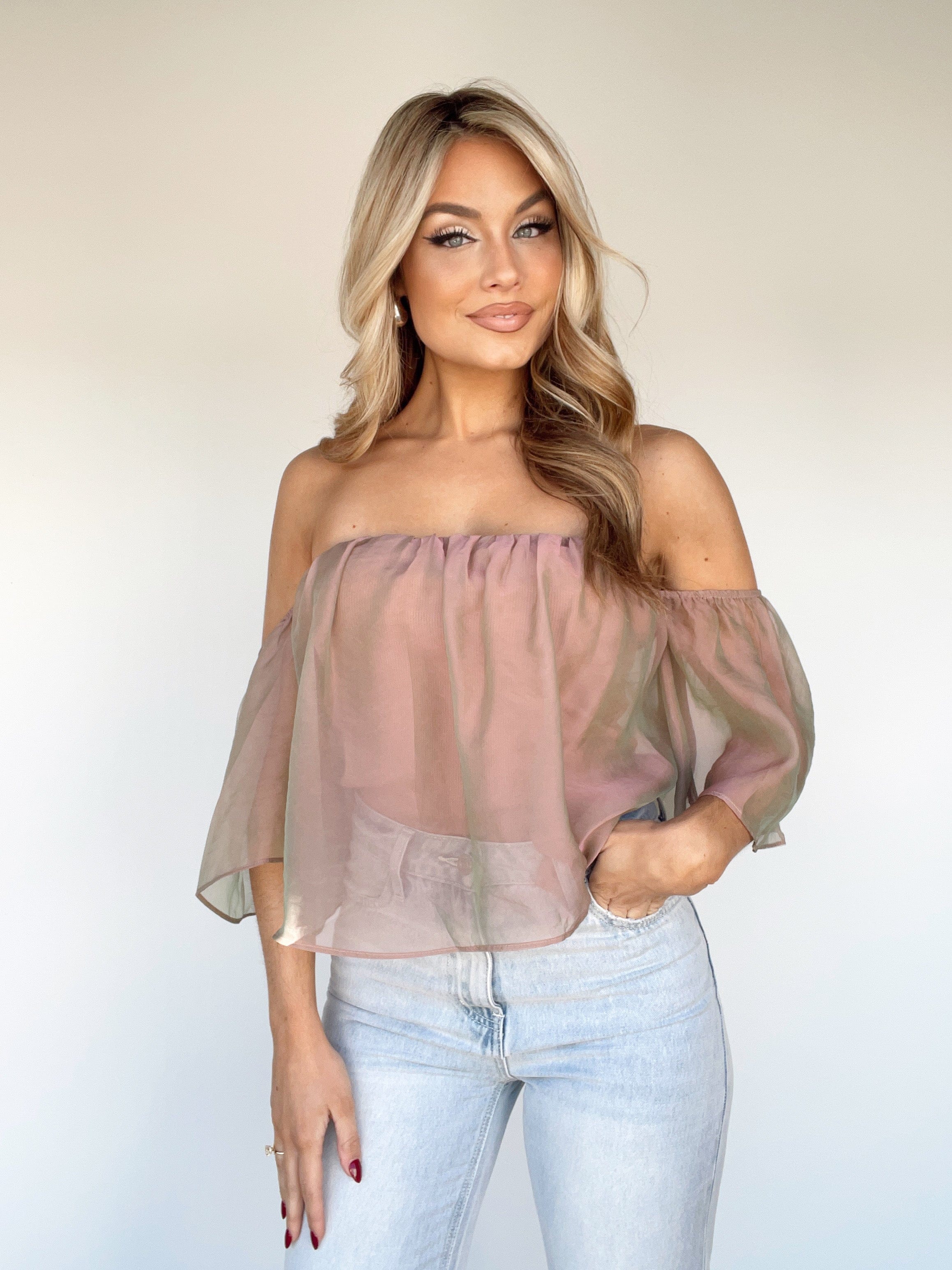 Look effortlessly elegant in the Barely Blushing Top. Featuring a mesh overlay with a soft inner lining and strapless cut, this top is the perfect piece for any special occasion. Its sheer off the shoulder detailing and stretchy elastic band blend with the glamorous cropped iridescent style to create an elevated statement for any party, dinner, or drinks. Flowy and eye catching, this top will make an unforgettable statement.