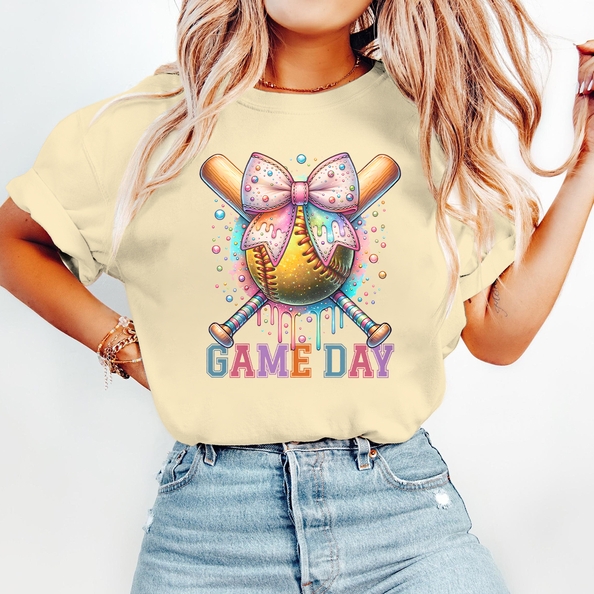 Baseball Game Day Printed Round Neck Short Sleeve T-Shirt 9520227