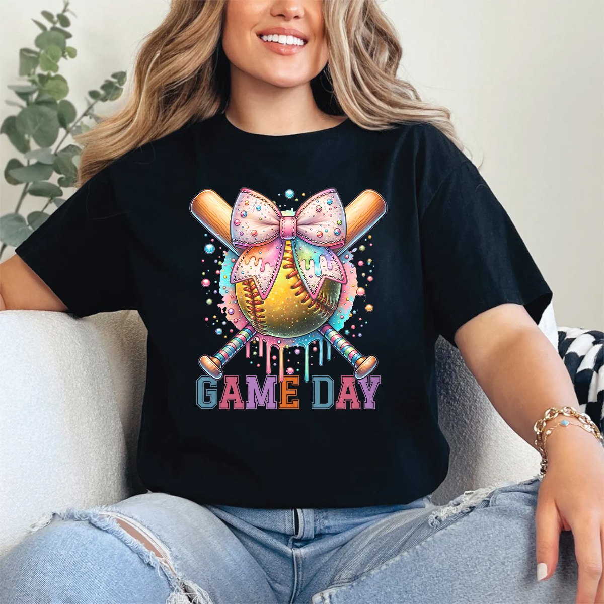 Baseball Game Day Printed Round Neck Short Sleeve T-Shirt