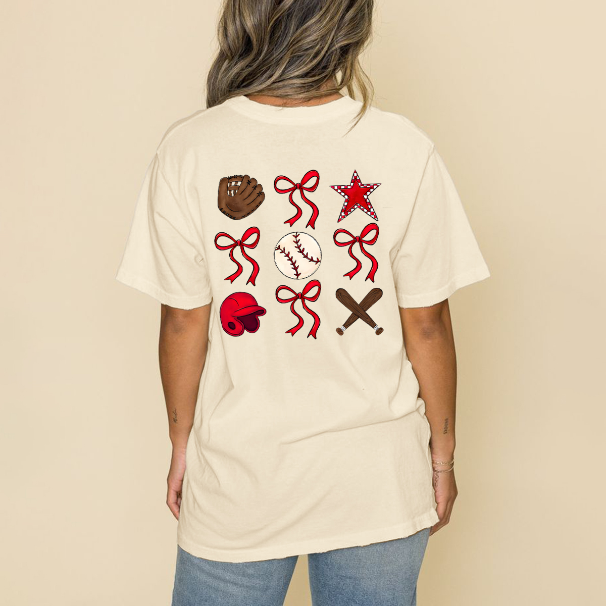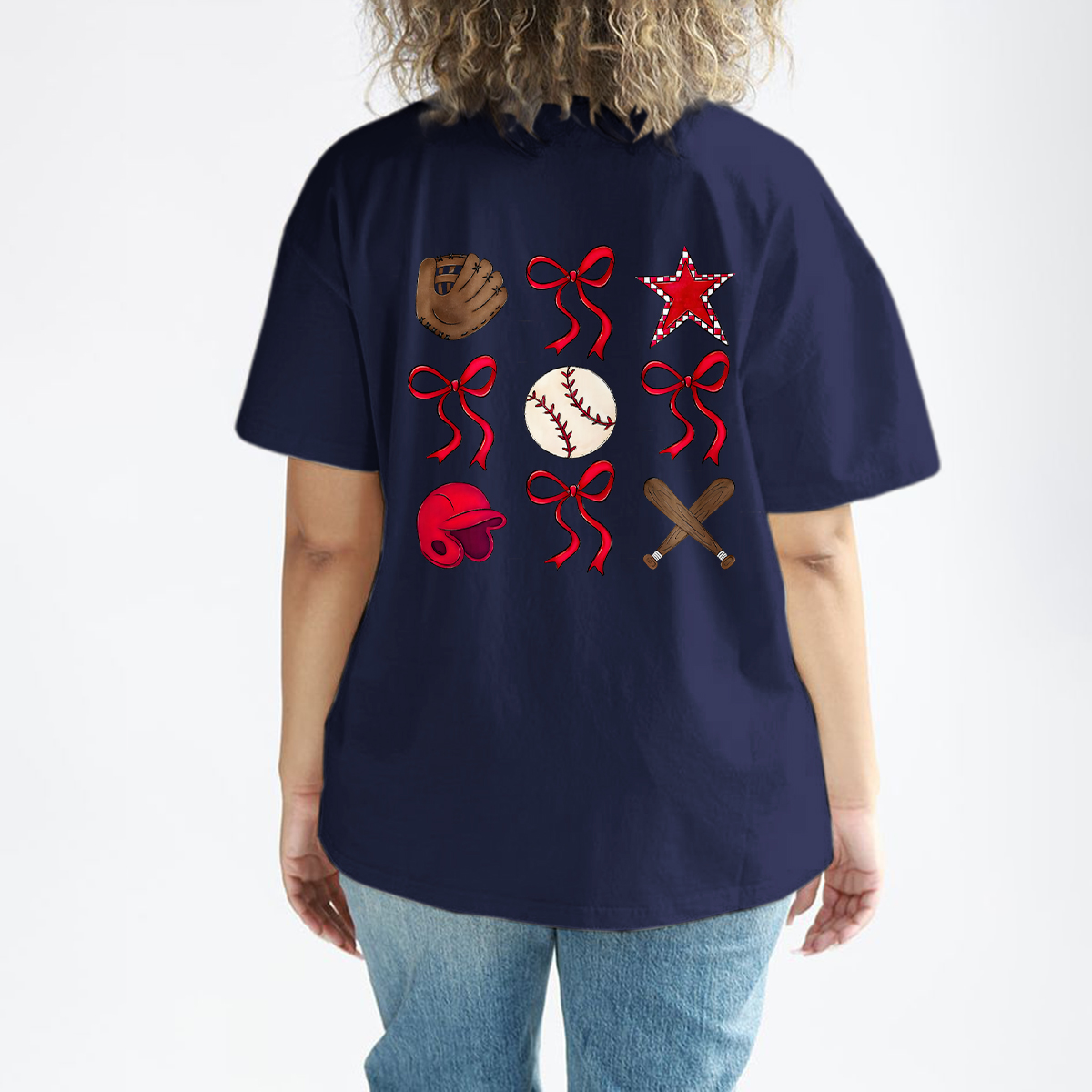 Baseball Gloves, Baseballs, Red Baseball Caps, Crossed Baseball Bats, Red Stars, And Multiple Red Bow Tie Combination Patterns, And Casual T-Shirts.