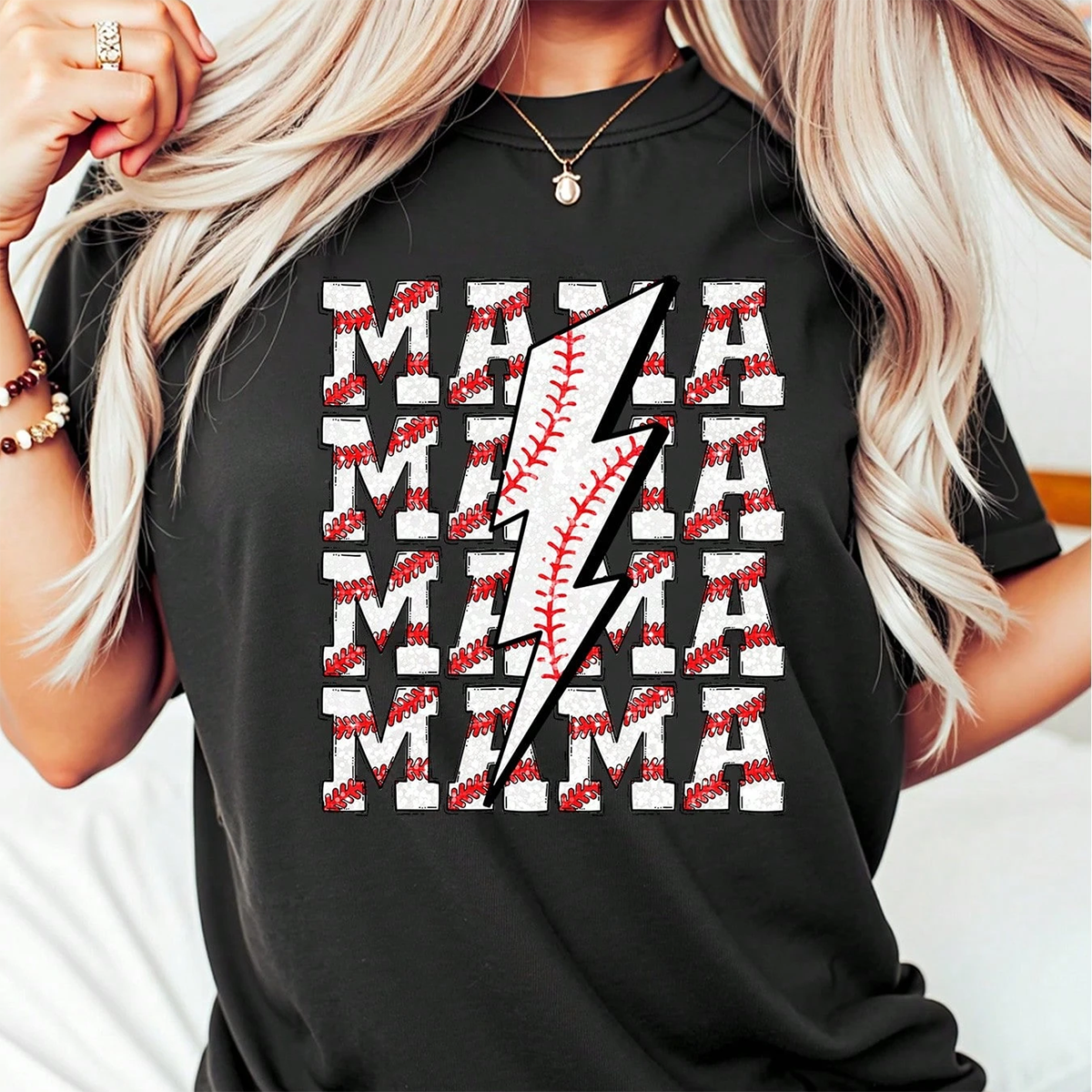 Baseball Mama Printed Round Neck Short Sleeve T-Shirt 9519240