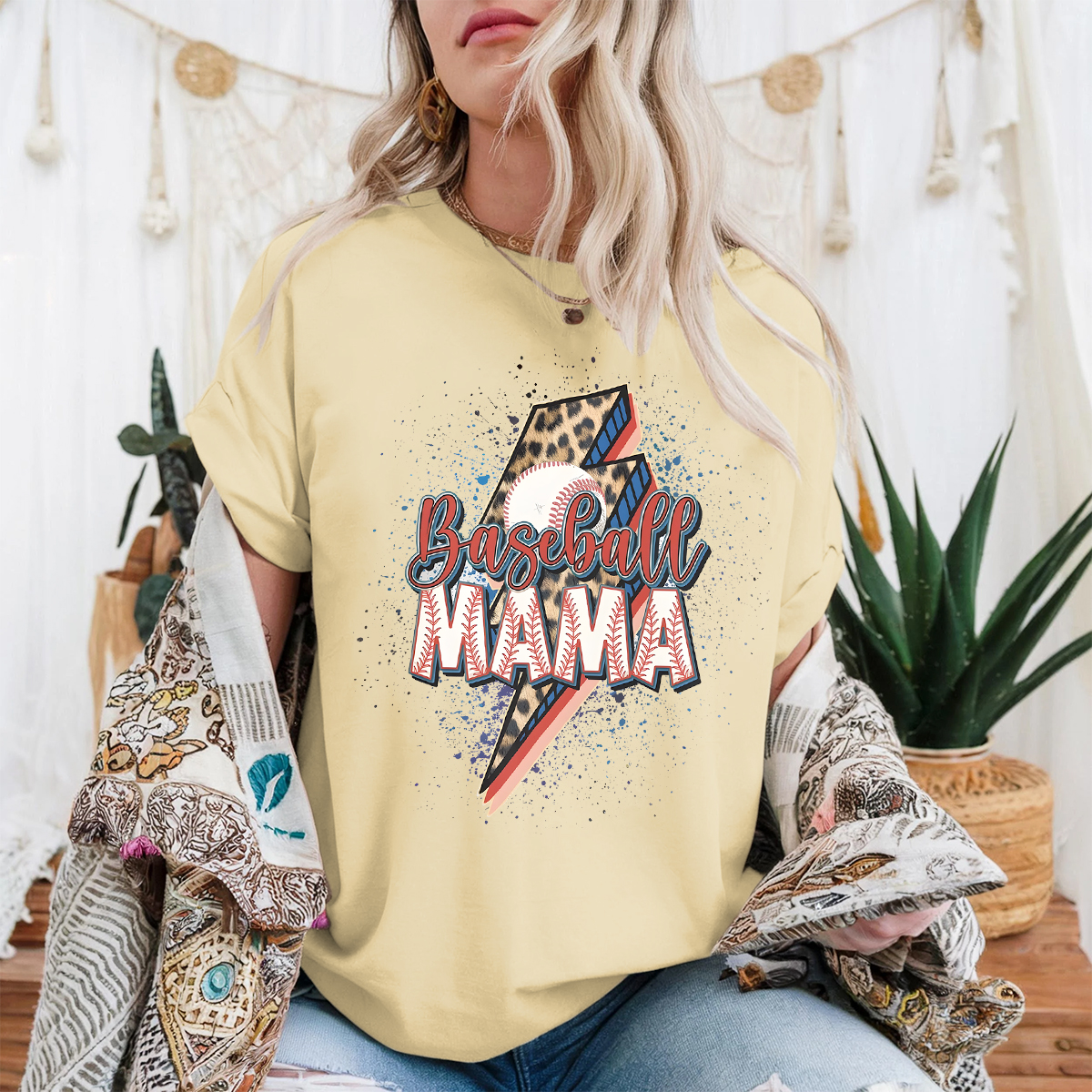 Baseball Mama Printed Round Neck Short Sleeve T-Shirt