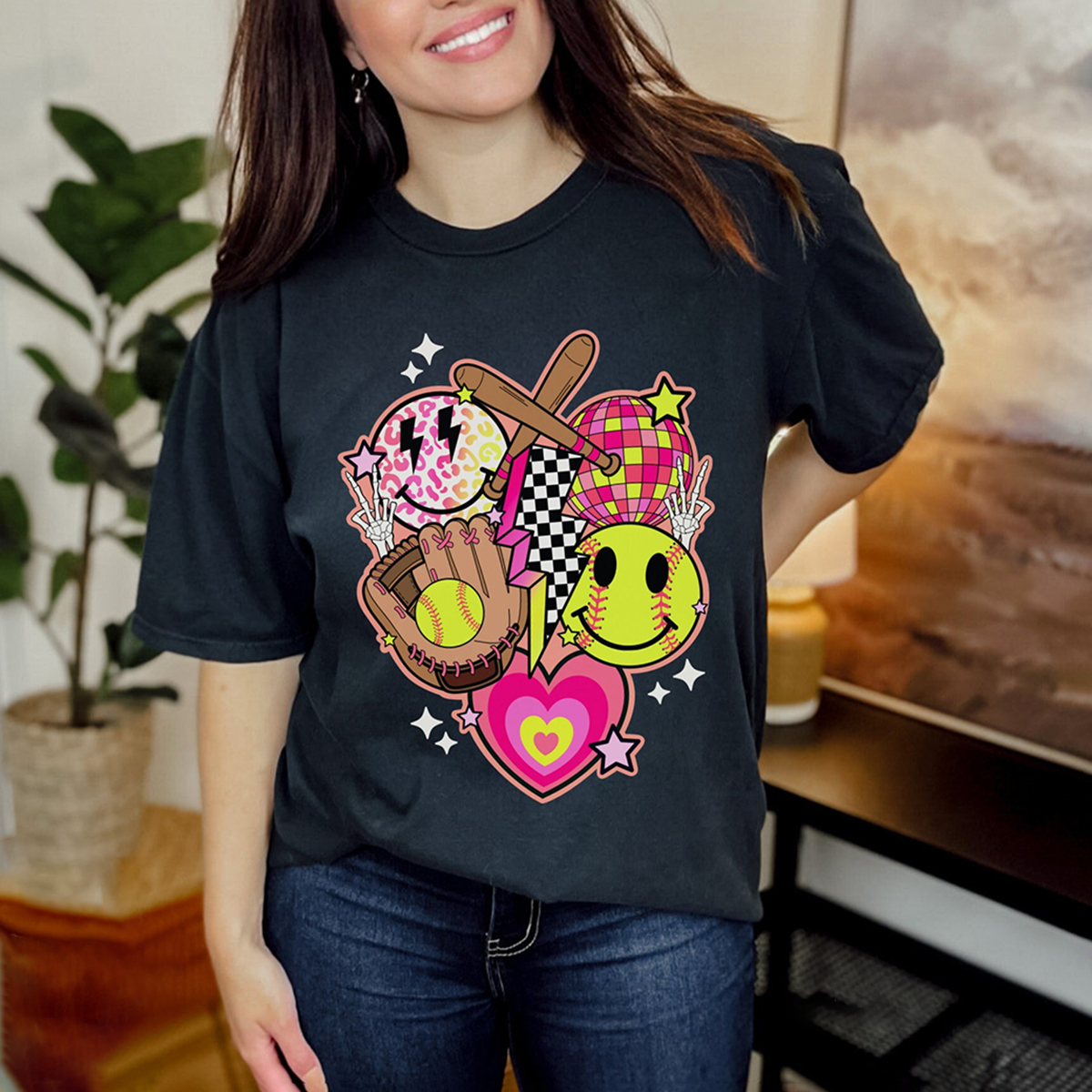 Baseball Season Printed Round Neck Short Sleeve T-Shirt