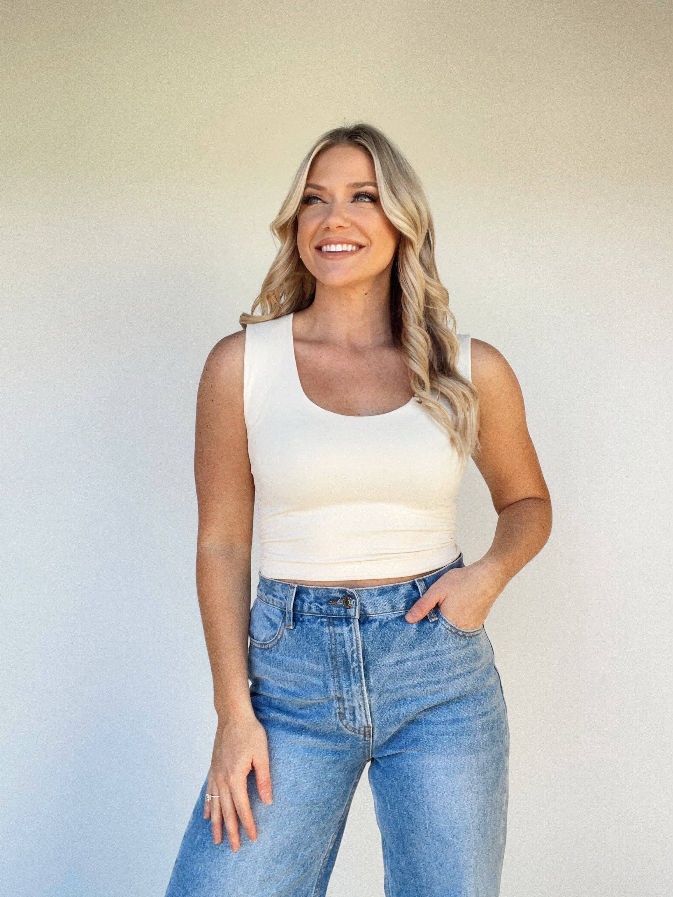 Experience unsurpassed comfort with this luxurious Basic Tank, featuring an ultra soft, super stretchy construction with a rounded neckline for a classic and modest look. Crafted for elevated basics, this essential cropped tank is fitted to flatter your shape in a trendy fashion, making it perfect for stylish layering and versatile styling.
