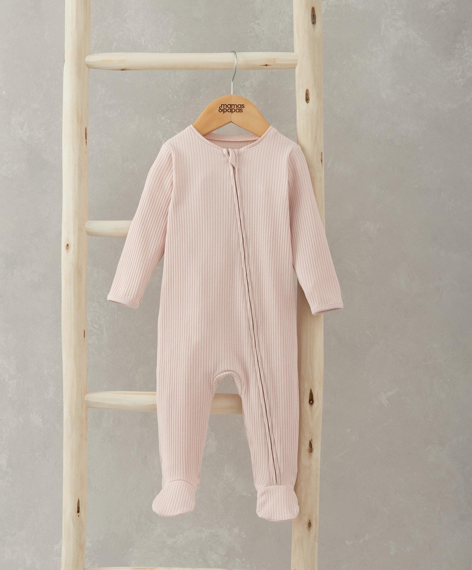 Pink Ribbed Zip Sleepsuit