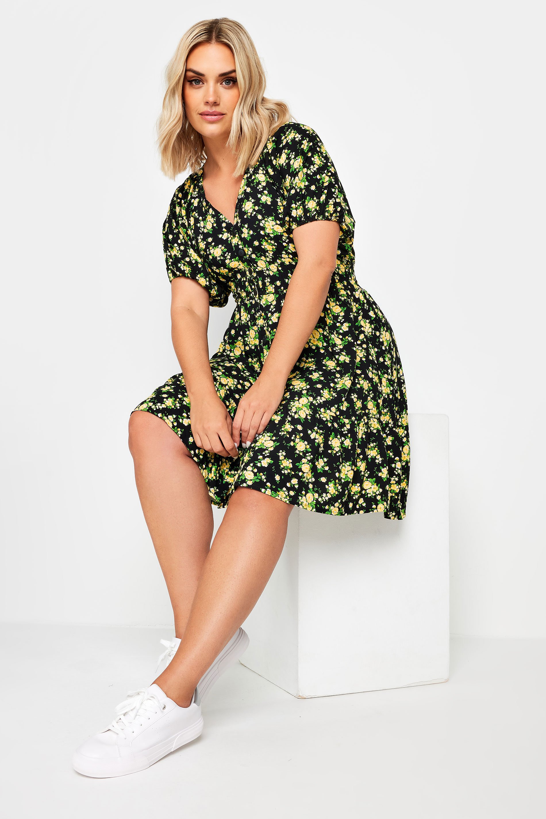 This dress is perfect for summer! Made from a soft woven fabric, this dress features a floral print, button through front and batwing sleeves. Partner with trainers or sandals to dress this outfit up or down!