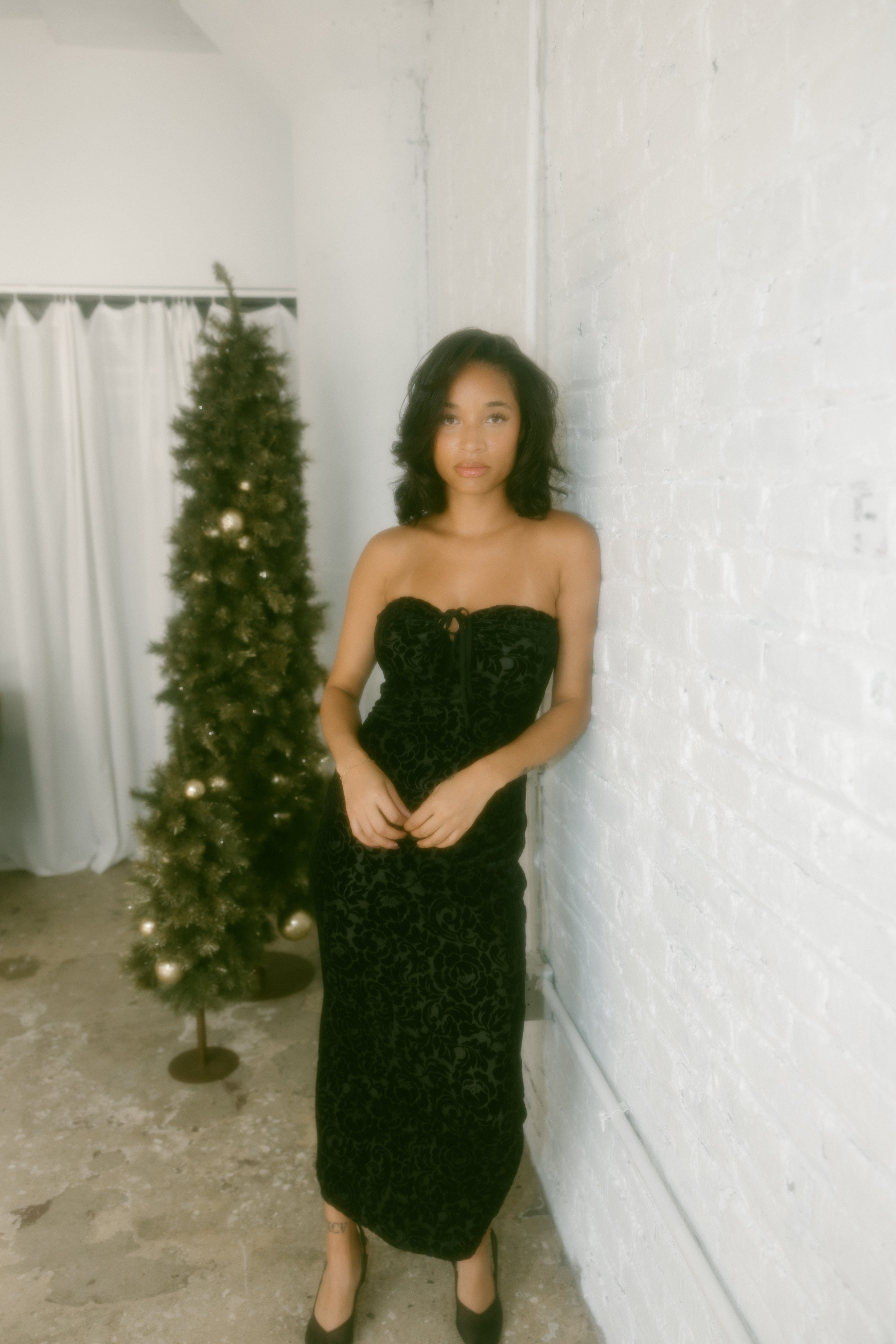 This black floral swirl maxi dress is the perfect addition to your wardrobe. The strapless design is both elegant and comfortable, while the intricate floral detailing adds a touch of femininity. With its versatile maxi length, this dress is suitable for any occasion!