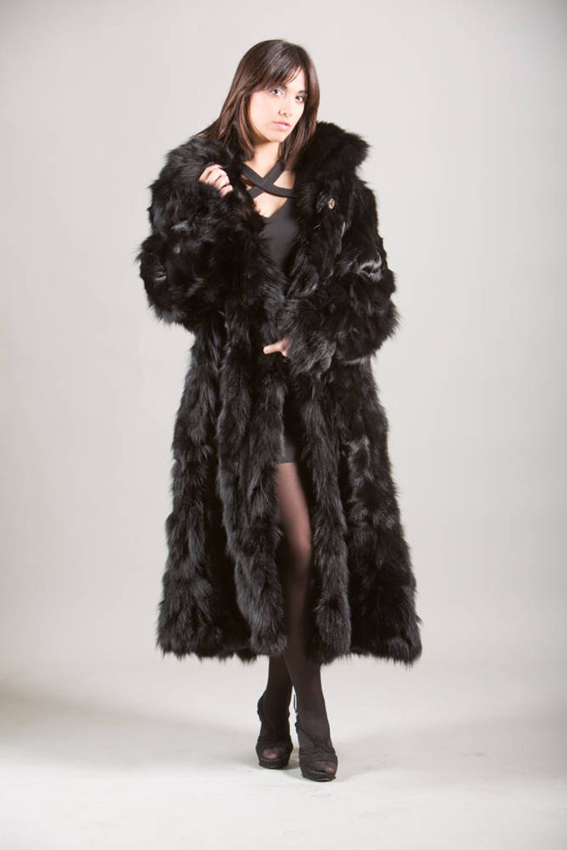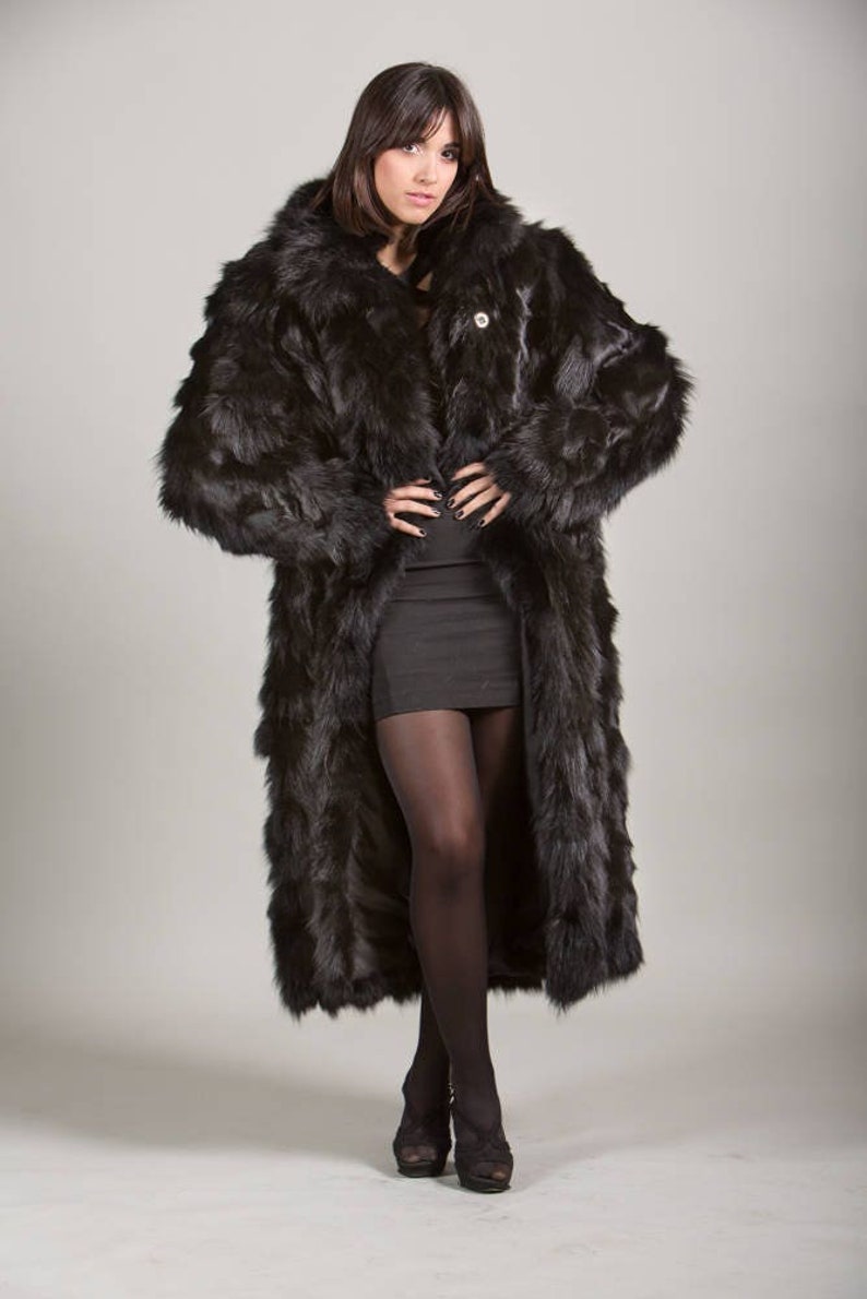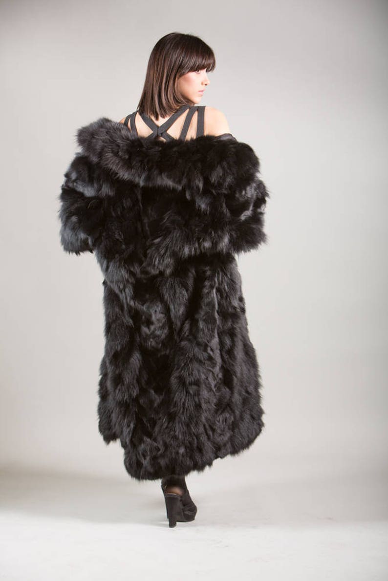 Keep warm this winter and enjoy a fantastic looking fox fur coat with this Black fox Fur Full-Length Jacket. Featuring a unique design in the pelts that are from Northern Finland, this Full-length jacket is the ultimate way to enjoy an animal fur jacket that is also extra warm and silky smooth!