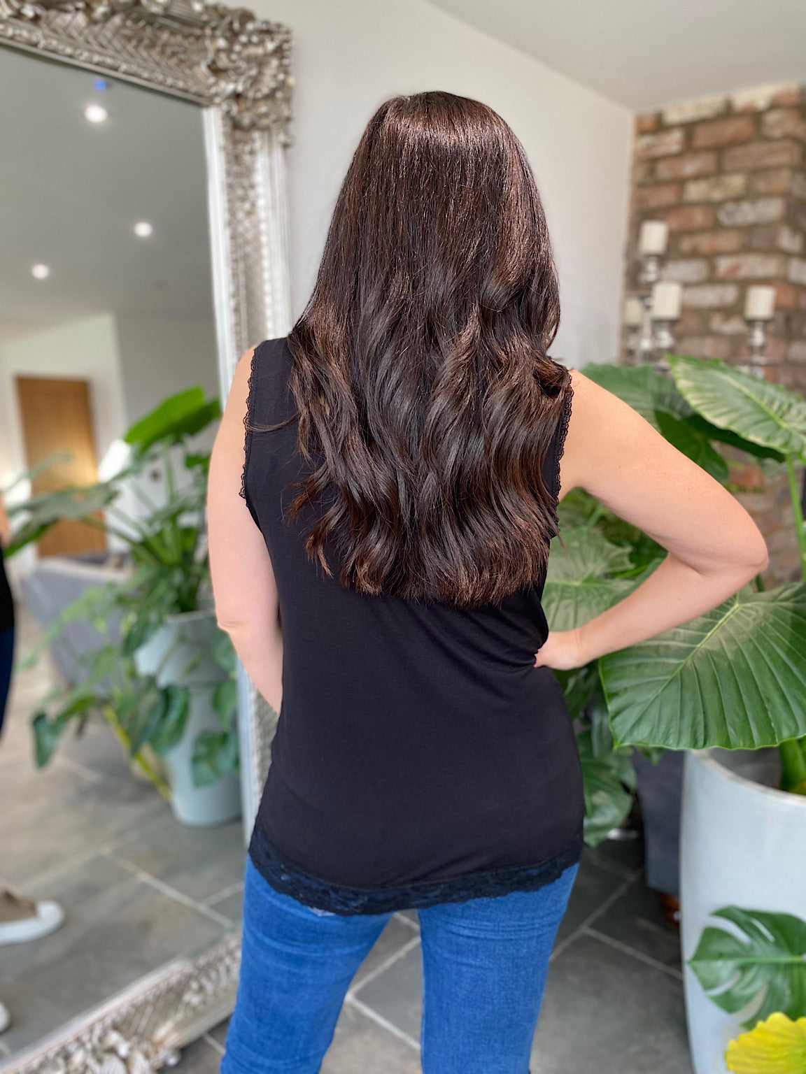Black Lace Trim Vest Top Ruth