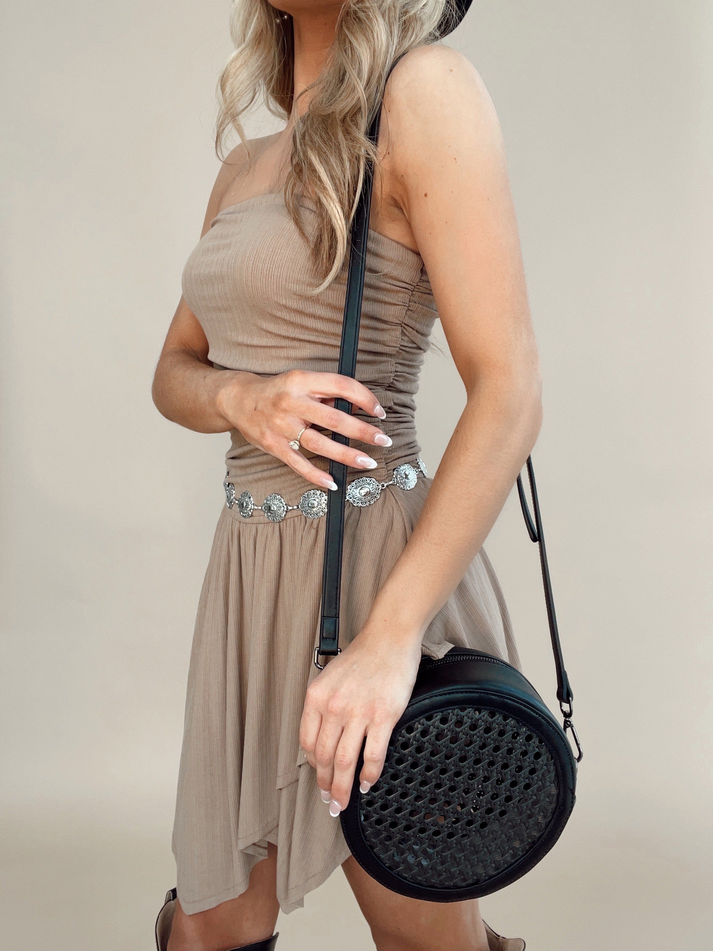 Elevate your style with our Black Rattan Crossbody. This boho-inspired bag features a versatile adjustable shoulder strap, perfect for concerts and festivals. Made with premium rattan material, it's the perfect accessory to add a touch of western flair to your spring and summer wardrobe. Accessorize in style with this trendy and elevated crossbody.