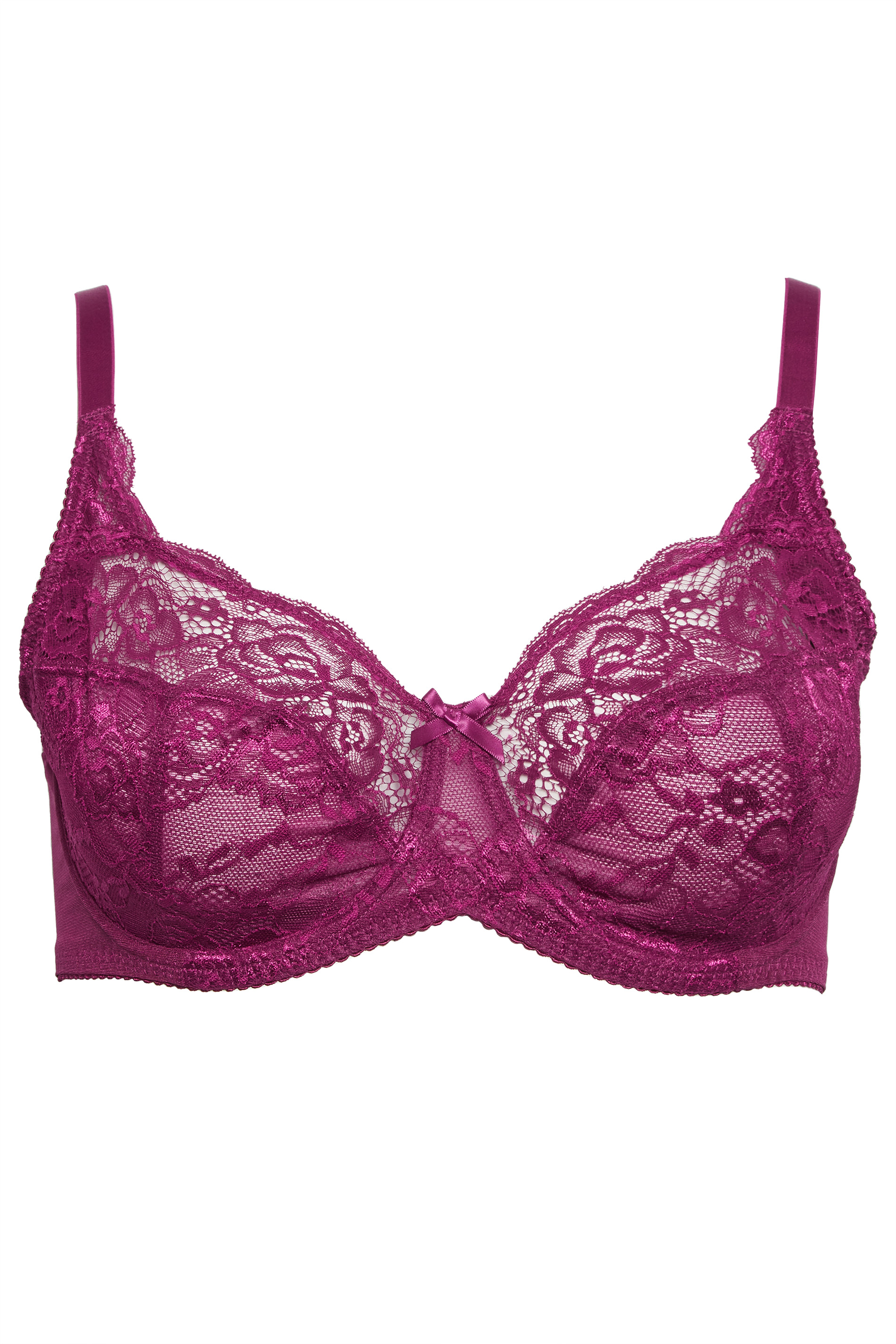 • YOURS Hot Pink Stretch Lace Non-Padded Underwired Balcony Bra