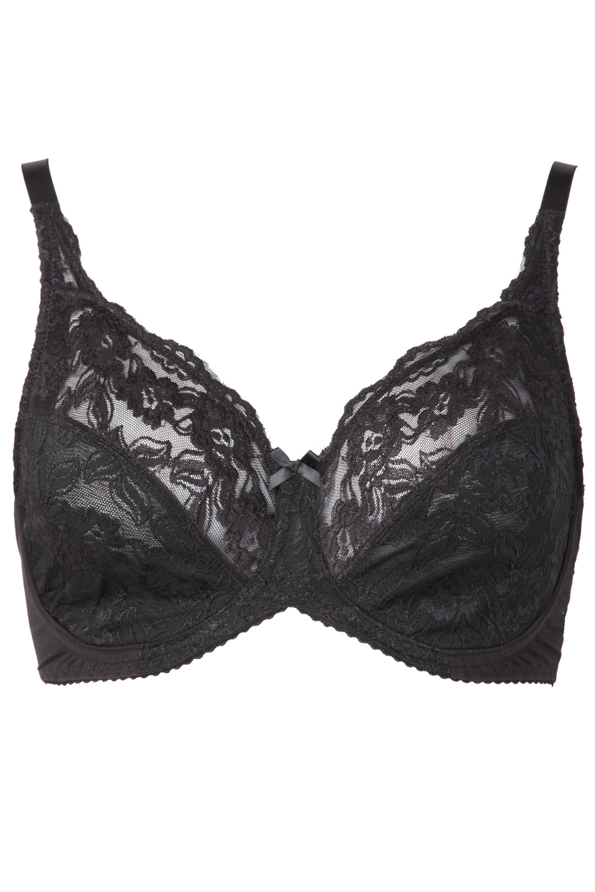 • YOURS Black Stretch Lace Non-Padded Underwired Balcony Bra