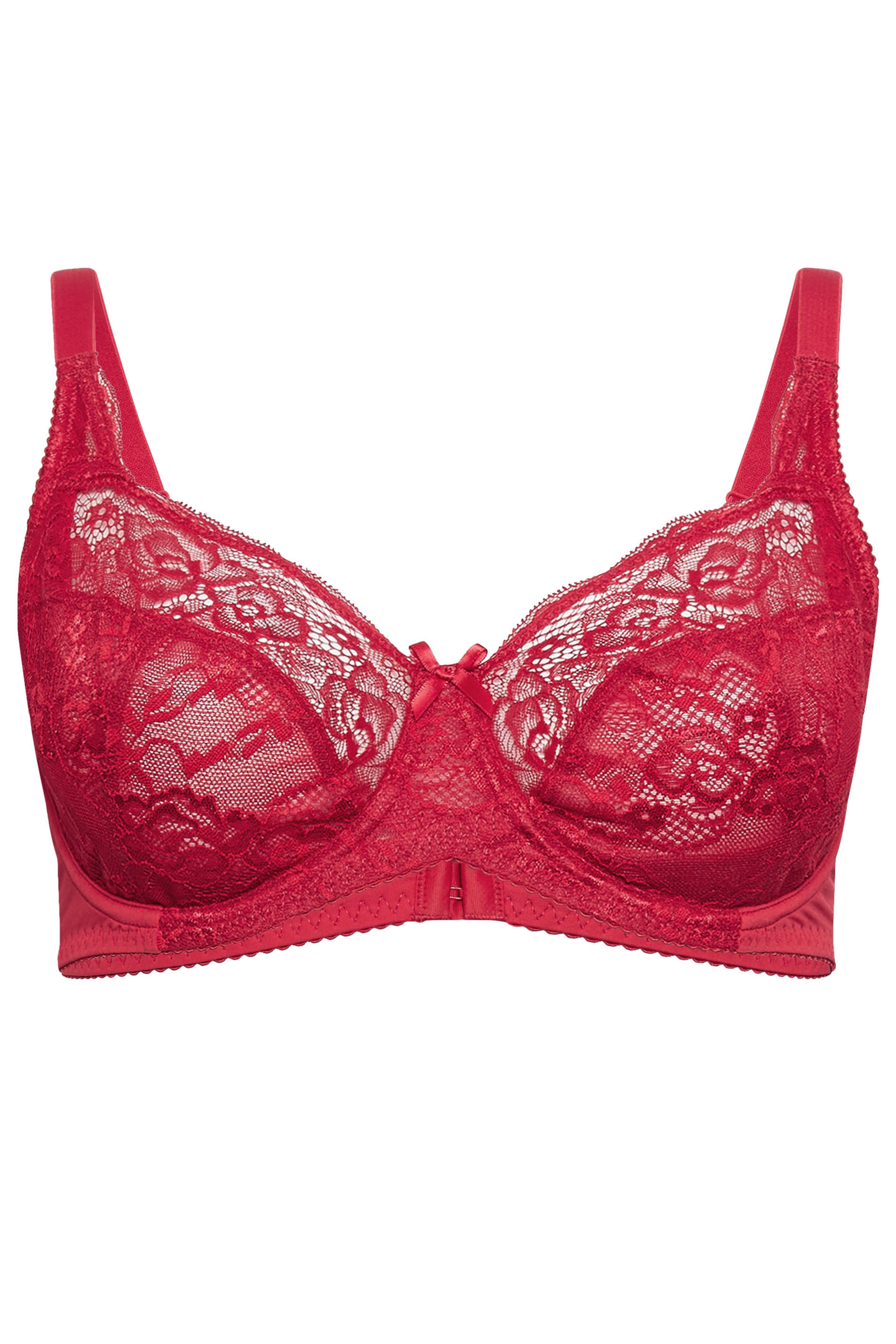 • YOURS Curve Red Stretch Lace Non-Padded Underwired Balcony Bra