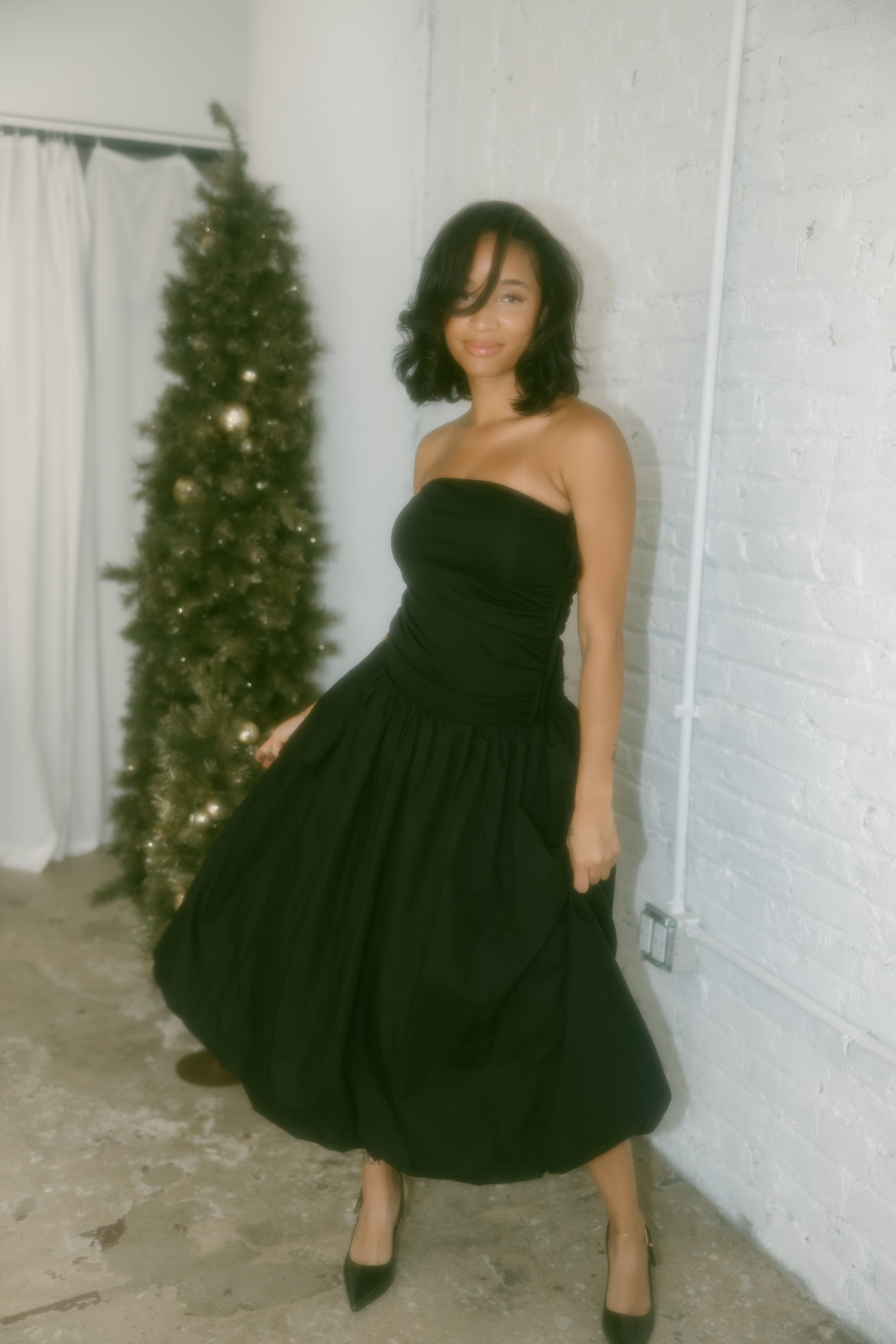 Experience comfort and style with our Black Tube Midi Dress. With adjustable straps, this dress offers a perfect fit for any body type. The ruching on both sides of the torso adds a flattering touch, making it a versatile and chic choice for any occasion.
